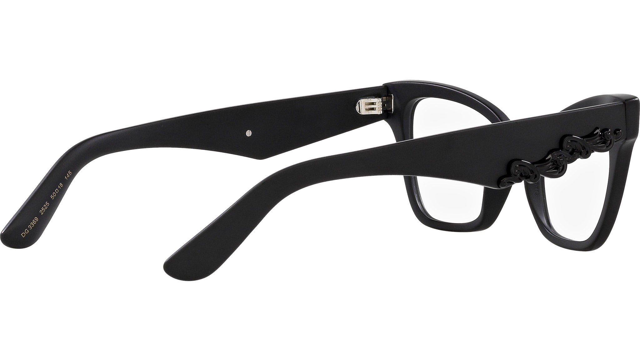 Occhiali da vista Dolce&Gabbana modello DG 3369 linea Statement codice colore 2525 nero opaco in acetato forma cat eye con aste color nero opaco.