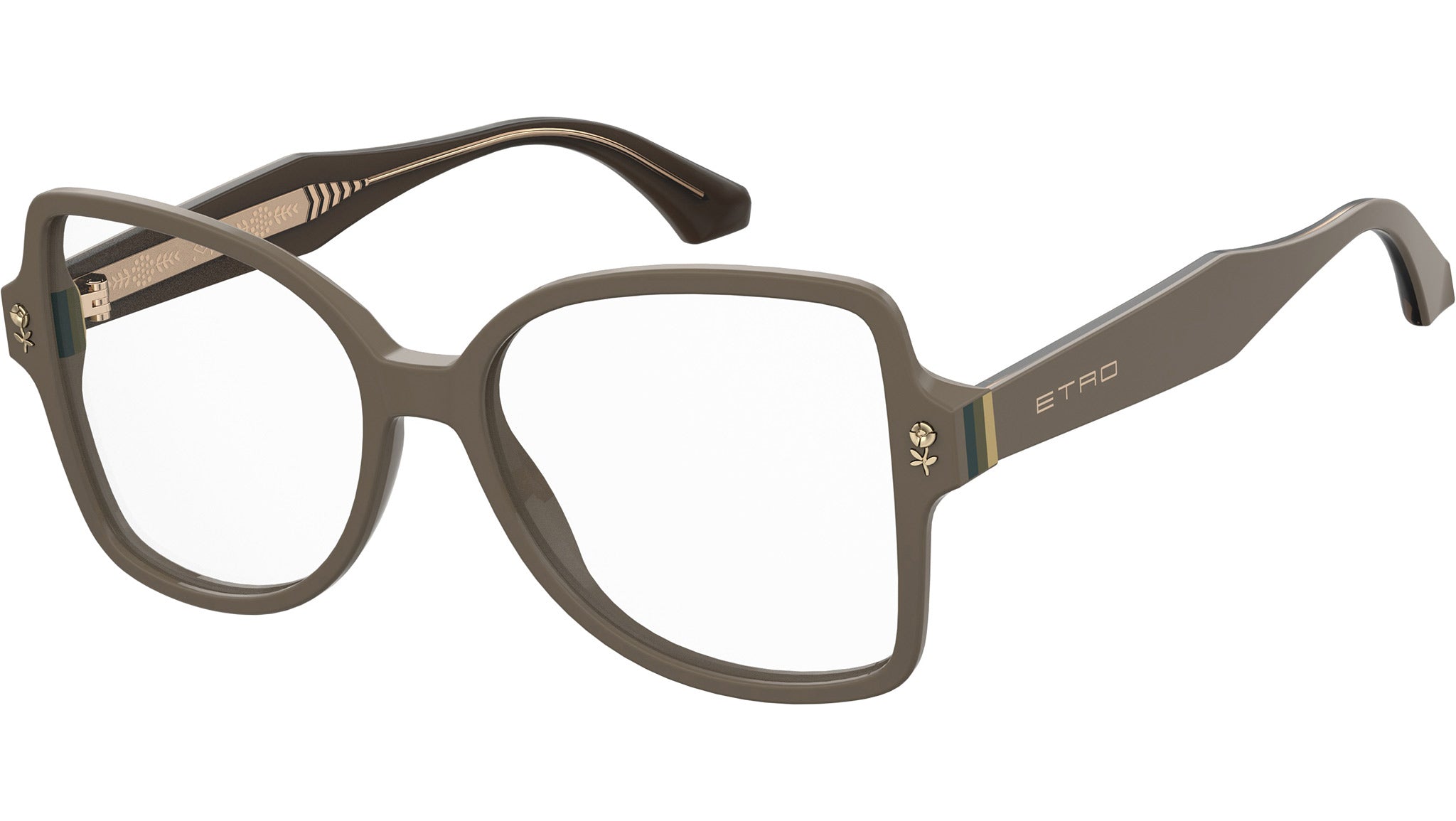 Occhiali da vista ETRO modello 0013 codice colore 79U fango con lenti demo Un omaggio ai motivi floreali e pattern grafici che definiscono l'estetica di ETRO, la collezione eyewear "Graphic Elegance" traduce i ricami e le stampe della Maison in occhiali da vista eclettici e raffinati. La montatura in acetato dagli angoli smussati è impreziosita da un'applicazione in metallo a forma di fiore e un inserto a righe multicolore sui lati. Le aste sono realizzate in acetato trasparente con un'anima interna in metallo. Il design innovativo è completato dagli iconici terminali in acetato, ispirati alla simmetria del logo ETRO. Rivenditore autorizzato online ETRO Eyewear.