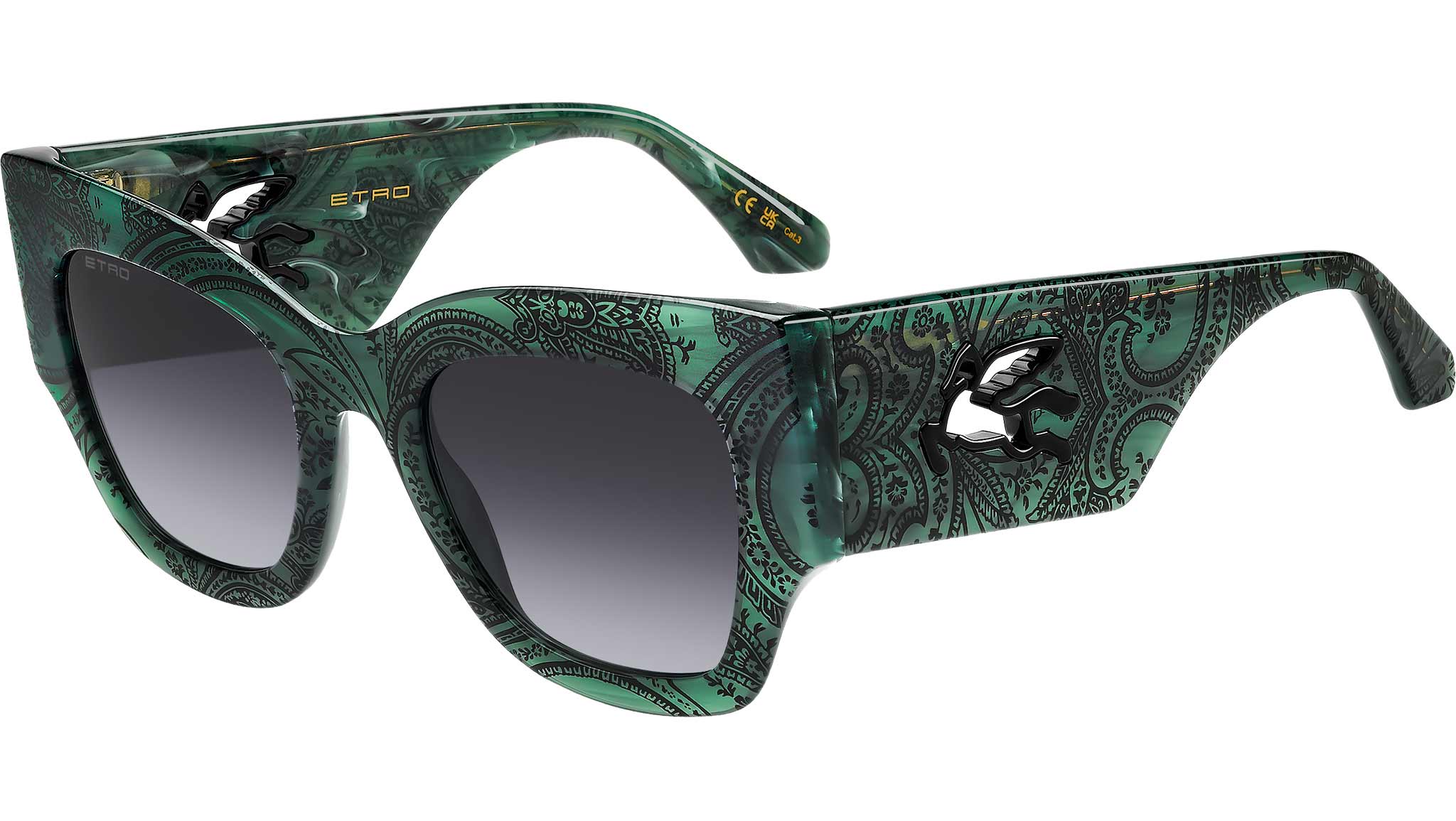 Occhiali da sole Etro 0076/S JRI 9O donna con montatura rettangolare in acetato verde marmo e lenti in CR-39 grigio scuro sfumato. Autenticamente ETRO, questi occhiali da sole sono una vera dichiarazione di stile. La forma audace e la costruzione raffinata sono esaltate dall'inaspettato dettaglio Pegaso cut-out in metallo. Realizzati in acetato premium sviluppato esclusivamente per il brand, sono rifiniti con un processo di fresatura che garantisce un design impeccabile. Le varianti disponibili spaziano dai classici nero e bordeaux di ETRO al motivo Paisley, che dona una nuova energia ai codici iconici del brand. Linea: Etromania. Codice modello: 207798. Codice colore: JRI 9O. Rivenditore autorizzato Etro online. Gli occhiali vengono consegnati con custodia e accessori originali e sono coperti dalla garanzia ufficiale di 12 mesi del produttore.