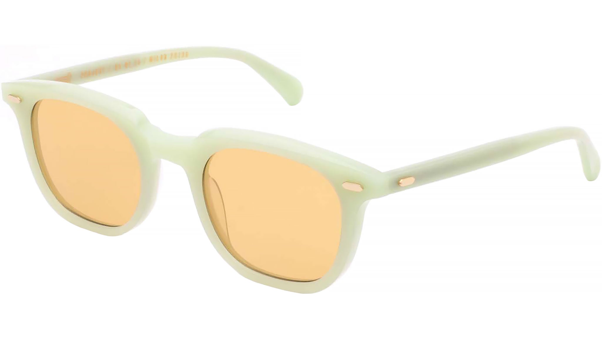 Occhiali da sole con montatura in acetato artigianale di colore verde menta e lenti arenaria. Materiale del telaio: acetato. Forma del telaio: quadrati. Cerniere metalliche a cinque barre e nucleo in filo personalizzato. Custodia rigida premium e panno per la pulizia in microfibra.