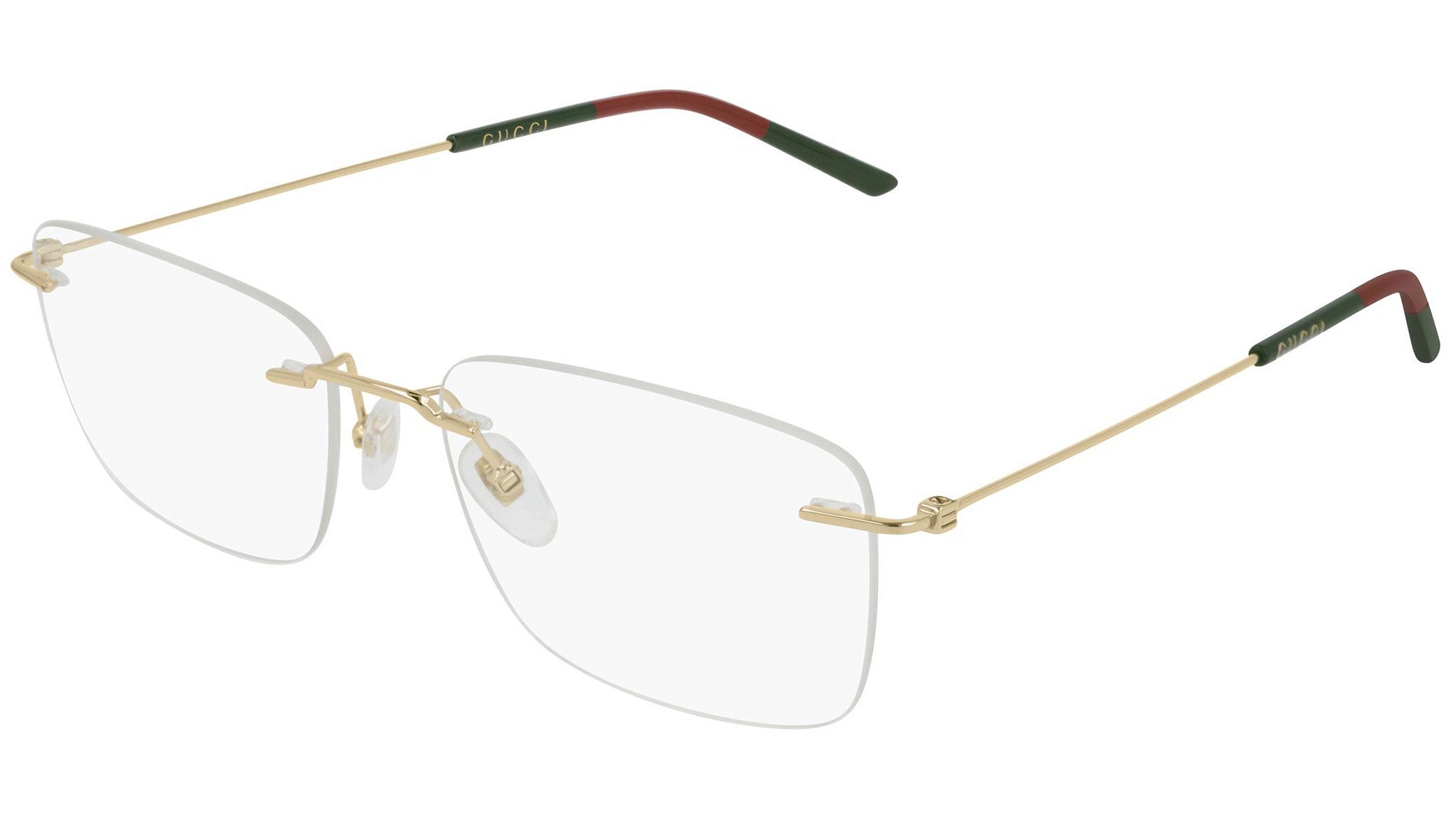 Gucci optical collection model GG0399O 002 featuring shiny endura gold frame and gold temple. Gucci Eyewear offer eclectic and contemporary creations that represent the pinnacle of Italian craftsmanship and are unsurpassed in quality, attention to detail and imaginative design. Buy your frames online and take them to your local optician to fit prescription lenses.