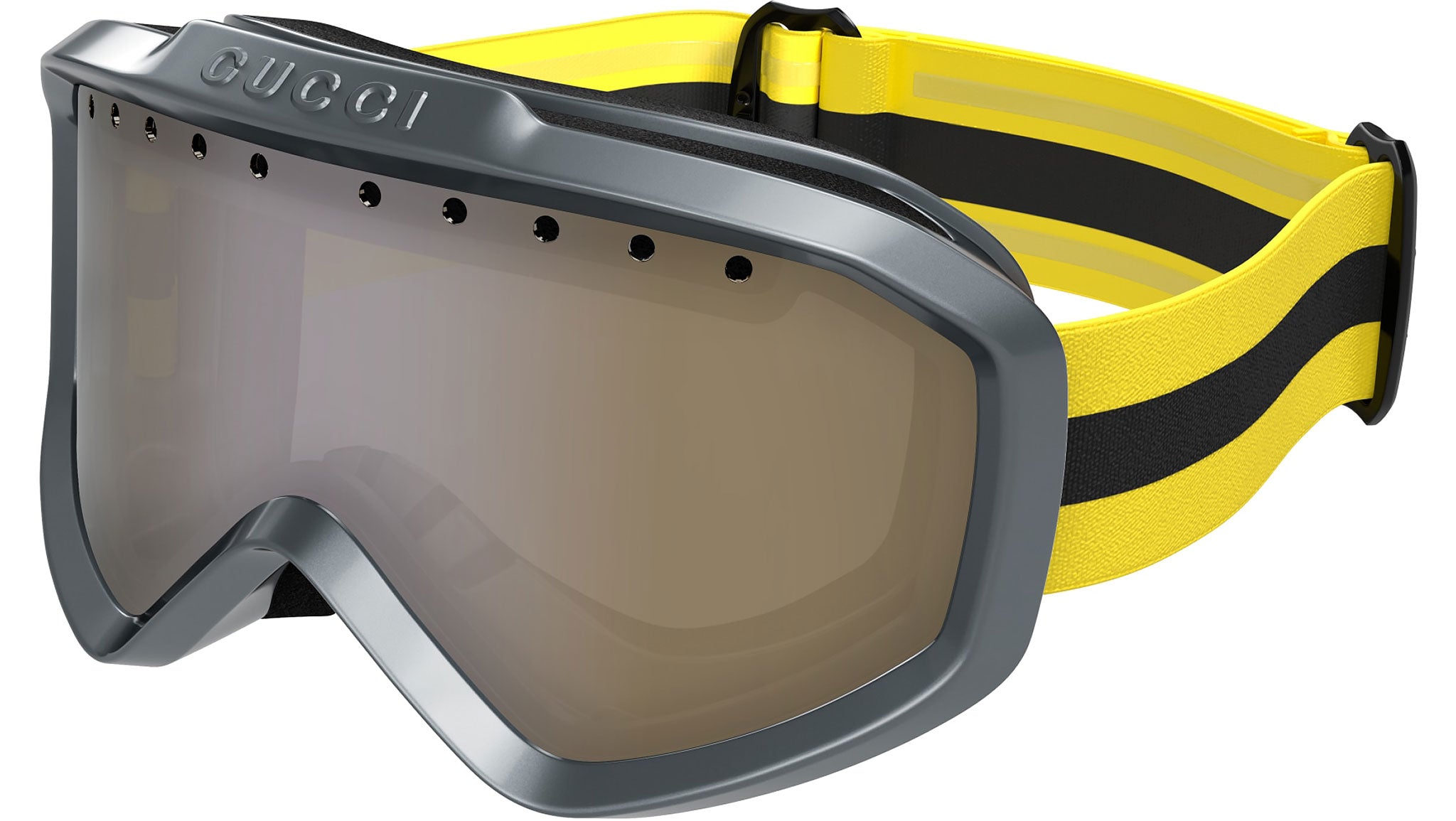 Occhiali da sole Gucci modello GG1210S linea Lettering in iniettato forma mascherina codice colore 007 rutenio scuro metallizzato lucido con aste giallo e lenti marrone solido + ml bronzo. Rivenditore autorizzato Gucci online. Gli occhiali vengono consegnati con custodia e accessori originali e sono coperti dalla garanzia ufficiale di 12 mesi del produttore.
