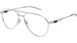 Occhiali da vista Gucci modello GG1679O linea Web in metallo forma aviatore codice colore 001 argento lucido con aste in argento e lenti demo. Rivenditore autorizzato Gucci online. Gli occhiali vengono consegnati con custodia e accessori originali e sono coperti dalla garanzia ufficiale di 12 mesi del produttore.
