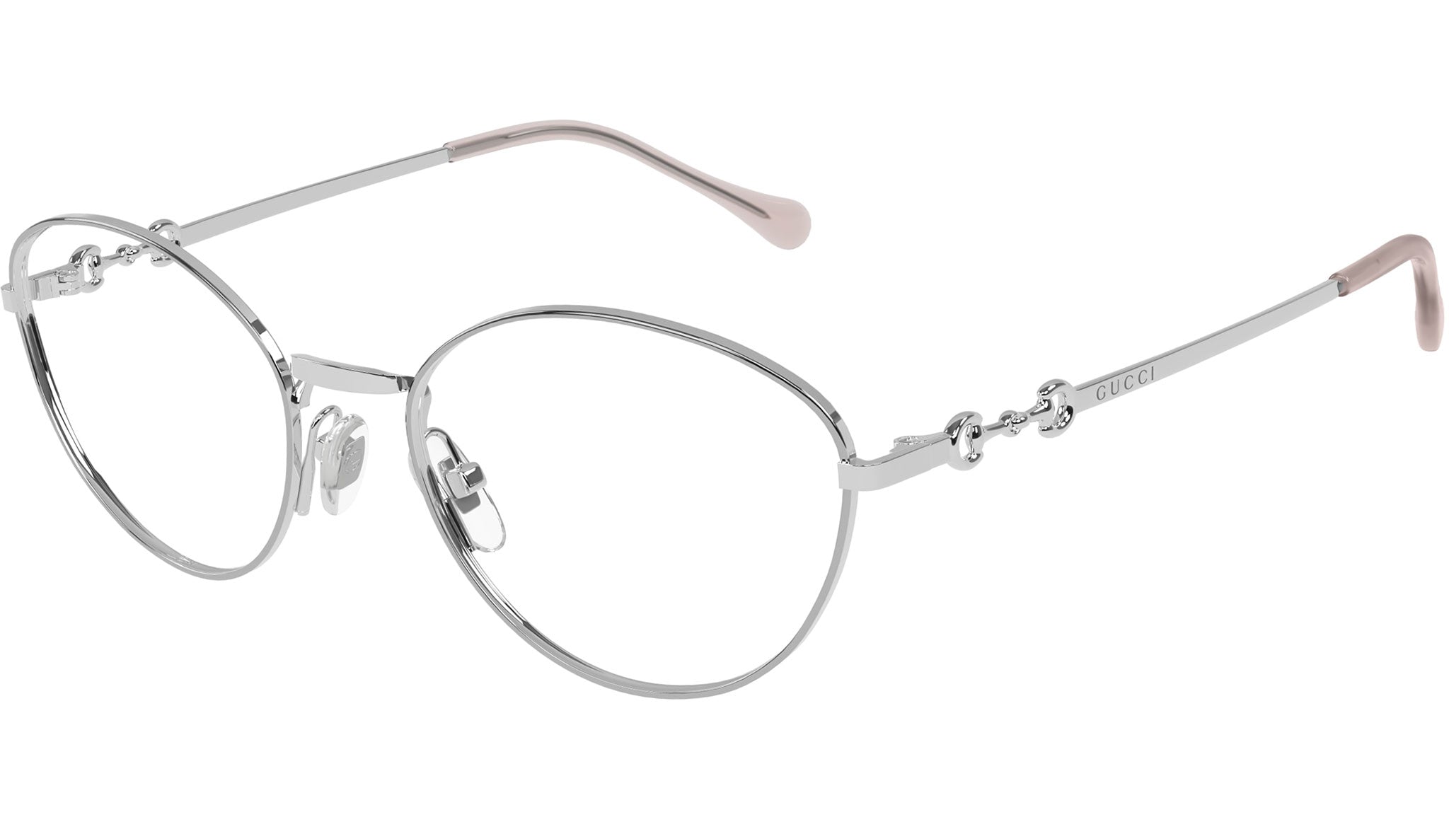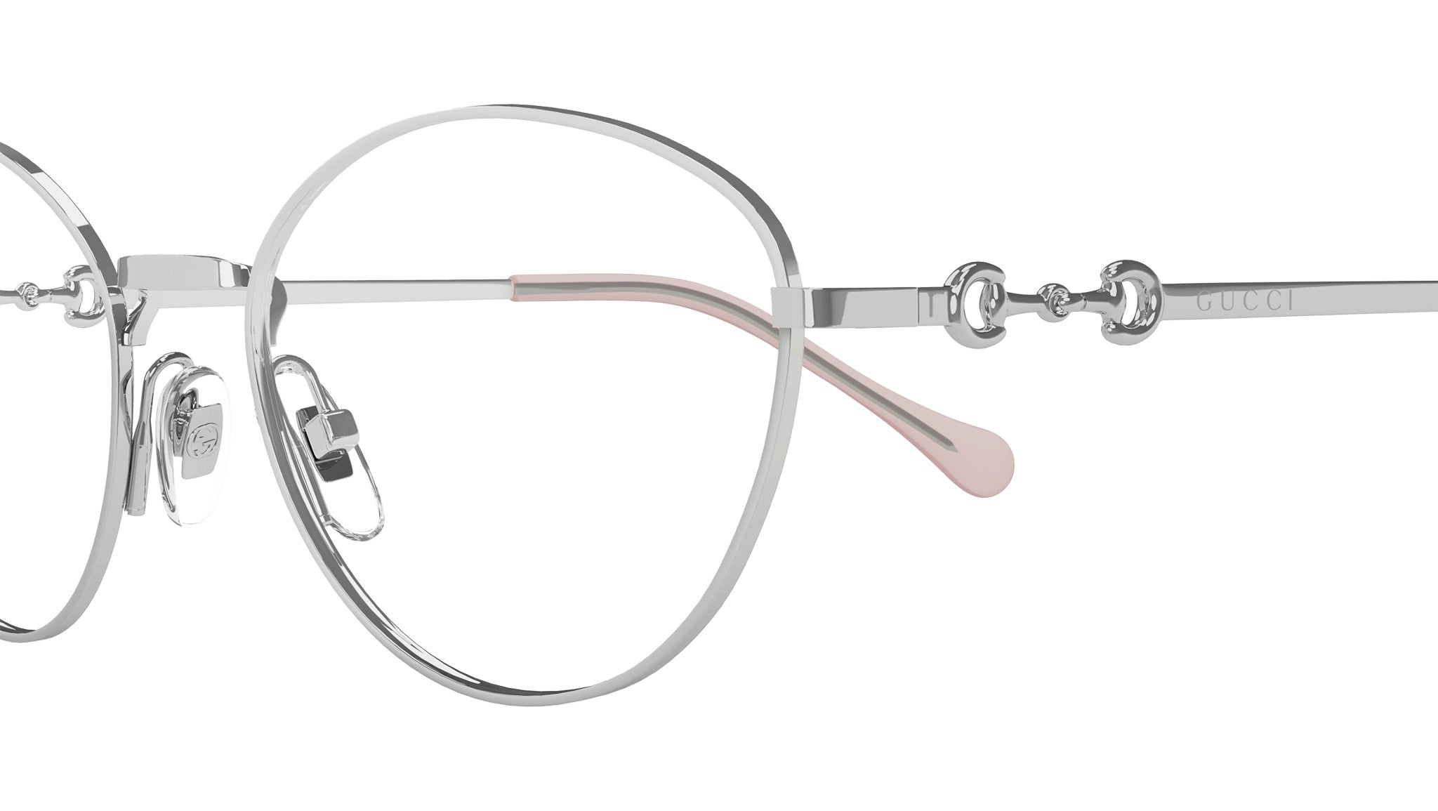 Occhiali da vista Gucci modello GG1699O linea Horsebit in metallo forma a gatto codice colore 004 argento lucido con aste in argento e lenti demo. Rivenditore autorizzato Gucci online. Gli occhiali vengono consegnati con custodia e accessori originali e sono coperti dalla garanzia ufficiale di 12 mesi del produttore.