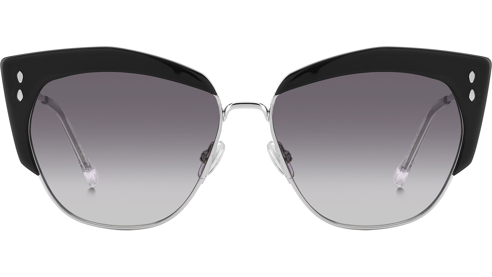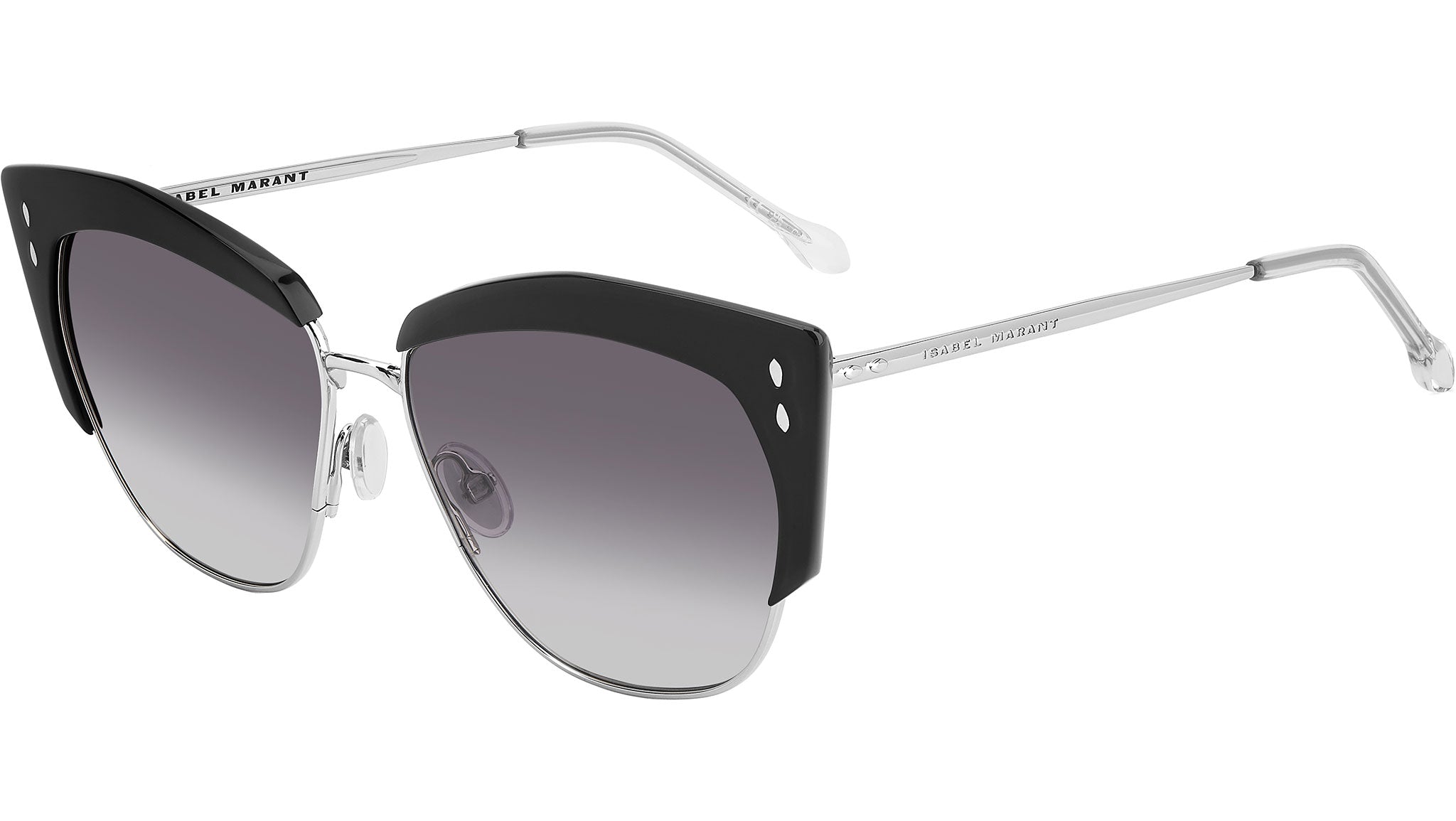 Occhiali da sole Isabel Marant modello IM 0160/S codice colore 0BS 9O Black Silver con lenti demo. La collezione eyewear Luck di Isabel Marant esprime una femminilità decisa attraverso una selezione di montature leggere in metallo, arricchite da inserti in acetato per un tocco glamour. Pensati per chi ama la moda e non ha paura di mostrare la propria personalità, questi occhiali da sole propongono una interpretazione moderna della classica forma cat-eye. Terminali sagomati in acetato e dettagli a forma di foglia sul frontale e sulle aste celebrano l'iconico motivo grafico del brand, mentre il logo inciso al laser aggiunge una nota esclusiva.