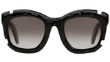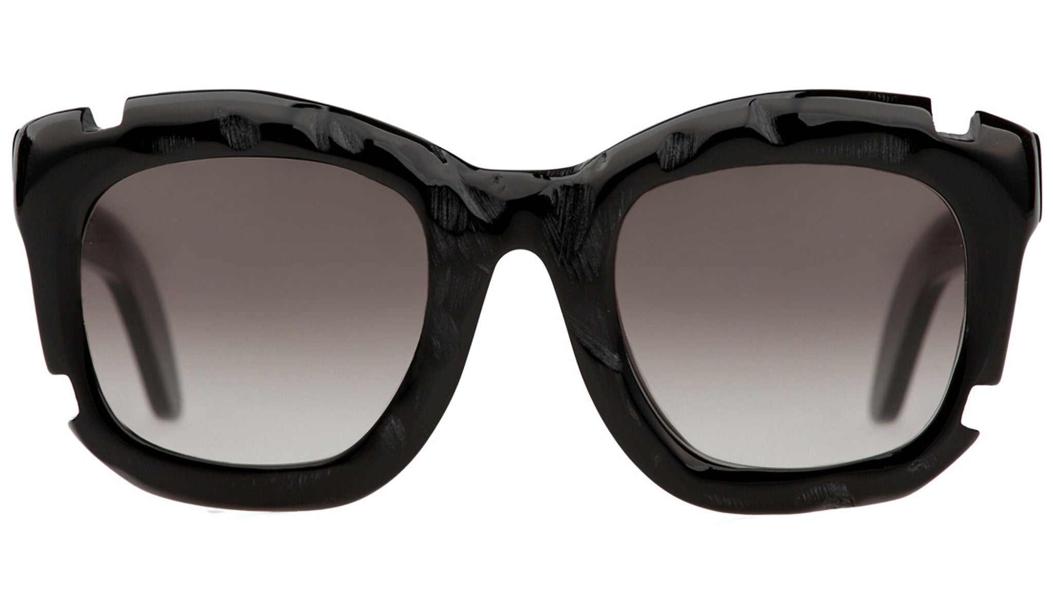 Kuboraum are masks that are designed on the face of its wearers to highlight their personality and character. Mask is synonymous with mockery and game. Kuboraum masks are synonymous with protection and shelter; they are cubical rooms where we shelter ourselves, free to live our intimacy and look at the world through two lenses. All masks are entirely dreamed in Berlin and handmade in Italy. B2 is a rectangular frame shape made with Mazzucchelli acetate 100% made in Italy. Black matte with a handcrafted surface finishing grey gradient lenses.
