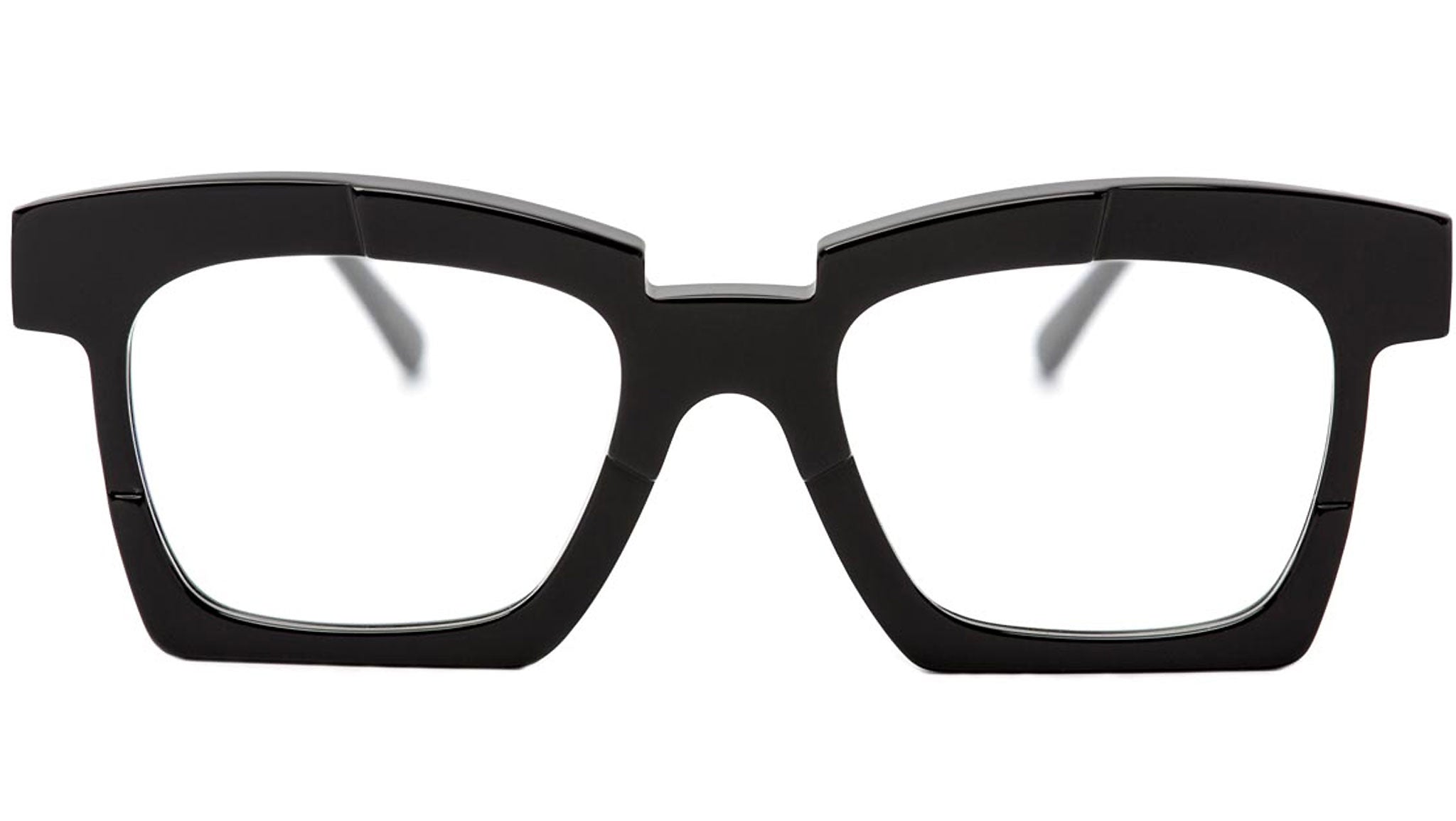 Kuboraum are masks that are designed on the face of its wearers to highlight their personality and character. Mask is synonymous with mockery and game. Kuboraum masks are synonymous with protection and shelter; they are cubical rooms where we shelter ourselves, free to live our intimacy and look at the world through two lenses. All masks are entirely dreamed in Berlin and handmade in Italy. K5 is a square frame shape made with Mazzucchelli acetate 100% made in Italy. Black shine frame with clear lenses.