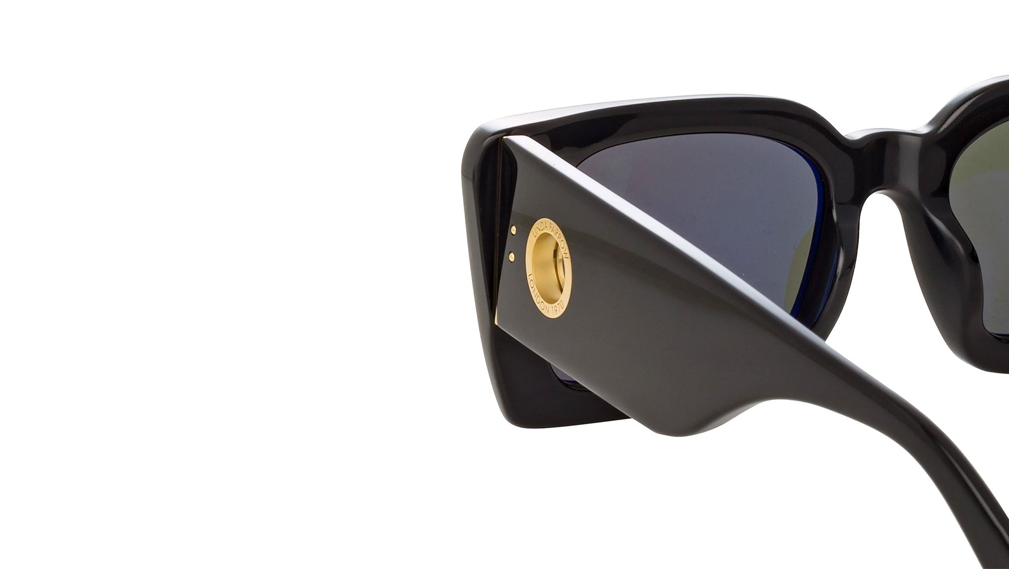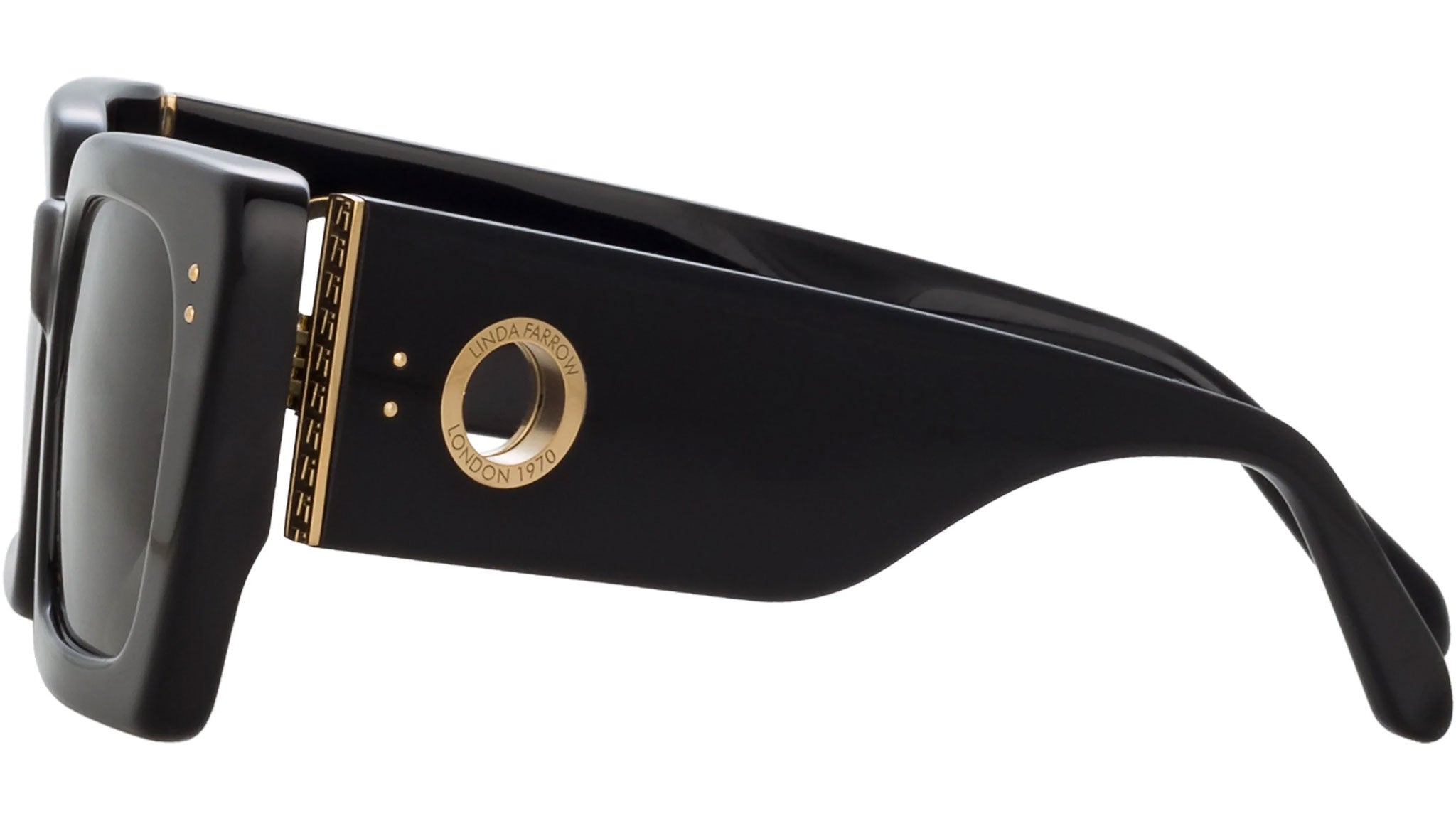 Gli occhiali da sole Nieve Rectangular in Black di Linda Farrow fondono stile senza sforzo e consapevolezza ambientale. Realizzati in Italia in acetato nero riciclato, presentano una finitura lucida e un design rettangolare sottilmente angolato che conferisce un'aria sofisticata. Le lenti grigie sono valorizzate dalla tecnologia ZEISS, che garantisce una protezione totale dai raggi UV e una nitidezza ineguagliabile. Il comfort è assicurato dai naselli e dalle aste laminate, mentre l'occhiello in titanio placcato oro giallo a 22 carati sull'asta larga è un segno di lusso e distinzione.