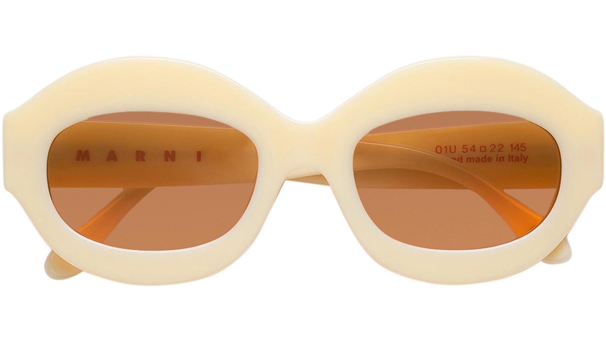 Designed exclusively for Marni, this is an oversized shape characterised by bold acetate construction and an iconic rounded geometry. Inspired by playful vintage designs, Ik Kil Cenote pushes the boundaries of contemporary eyewear with its exceptionally chunky rims encasing oval lenses to form a distinctive rounded form. This is a forward-looking piece of eyewear for those open to experimenting with style. The model comes with cream acetate and orange tinted lenses. Sizes: R Lens Width: 54 mm. Frame Front: Frame Side: 145 mm. Product Code Size R: 01U