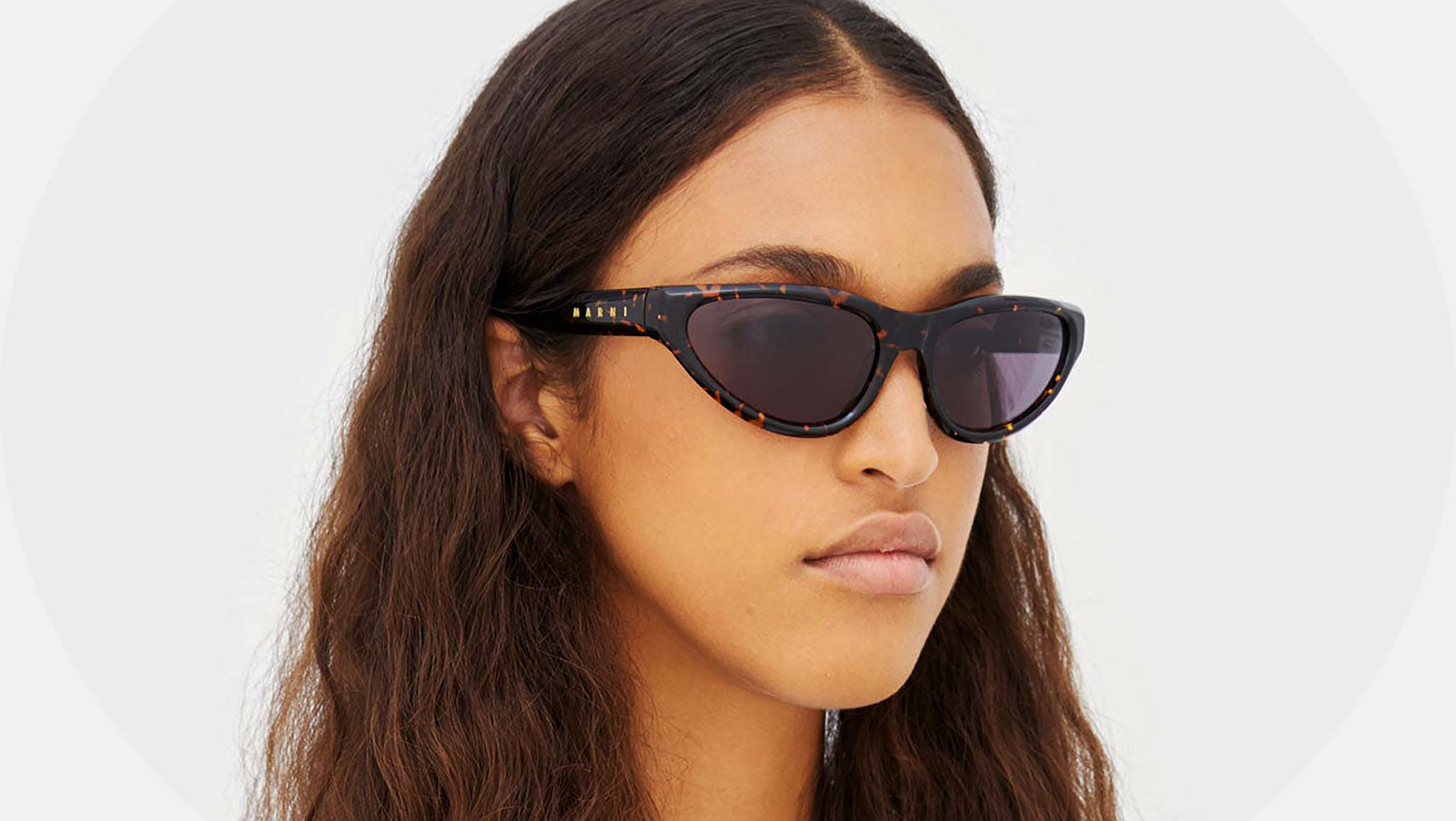 Designed exclusively for Marni, Mavericks reinterprets 1990s aesthetics with a fresh, forward-looking approach to style. A low-riding, horizontal frame, Mavericks features curved acetate construction for a wrap-around design. Carved rims elevate the model’s high-tech aesthetics, for an authentic futuristic piece of eyewear. This model comes in a rich spotted Havana acetate with black lenses. Sizes: R Lens Width: 60 mm. Frame Front: Frame Side: 135 mm. Product Code Size R: FD8