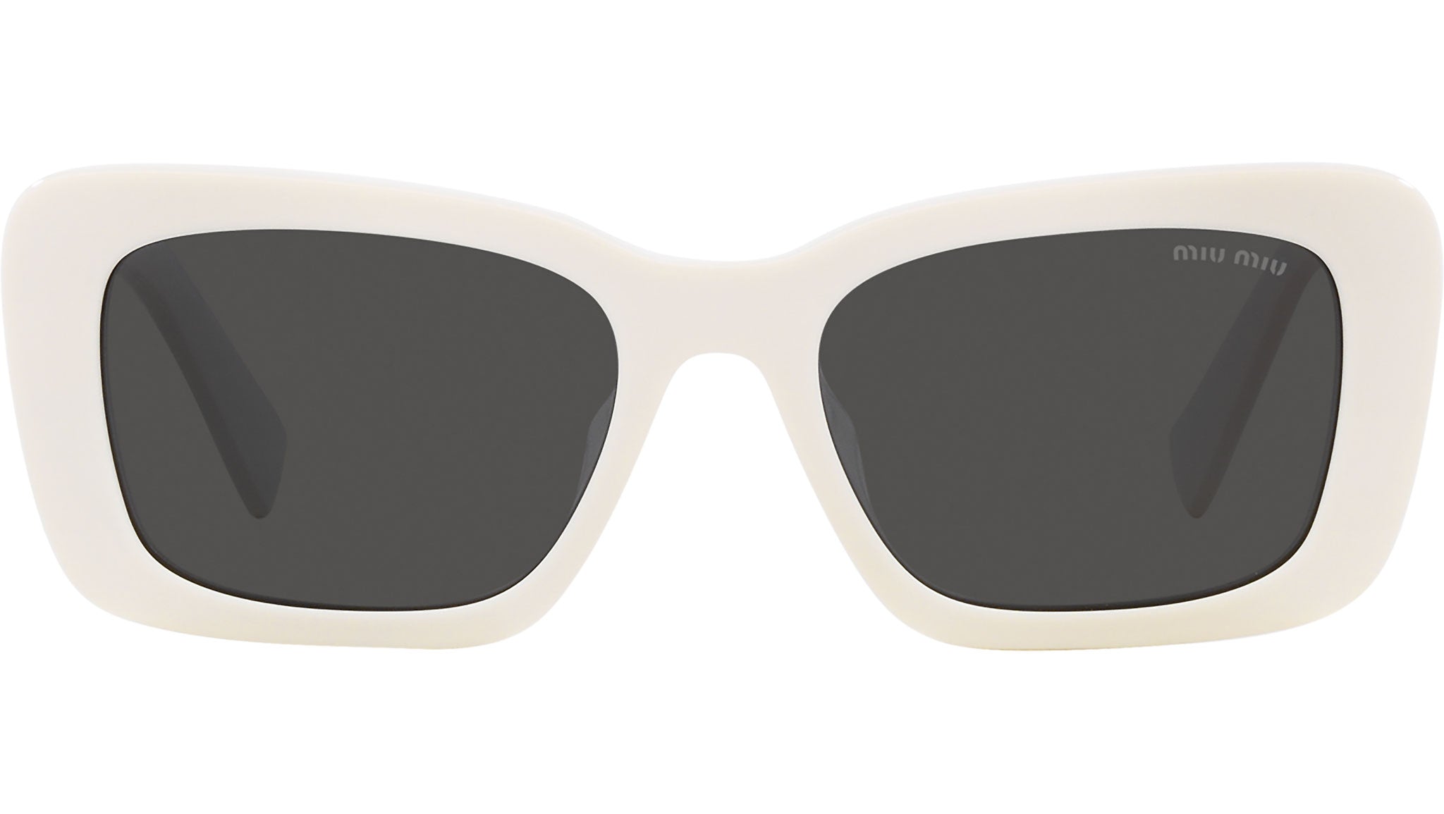 Occhiali da sole Miu Miu modello MU 07YS codice colore 1425S0 con montatura color bianco in acetato e lenti color grigio scuro. Miu Miu offre creazioni uniche, in cui la costante ricerca stilistica si combina perfettamente con la maestria artigianale della lavorazione. Le silhouette femminili e sinuose delle montature sono espressione di una ricchezza dei dettagli che rispecchia pienamente i codici stilistici e l’indiscusso talento del brand nell’unire il design non convenzionale ad un romanticismo dai rimandi retrò.