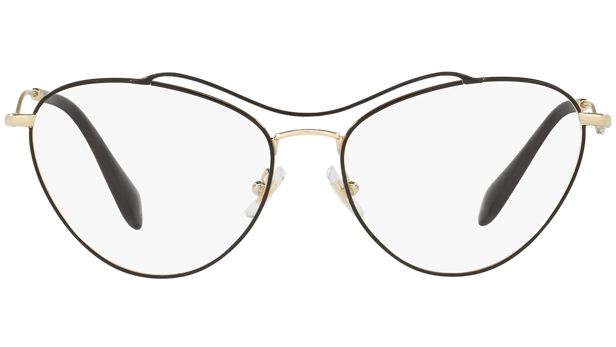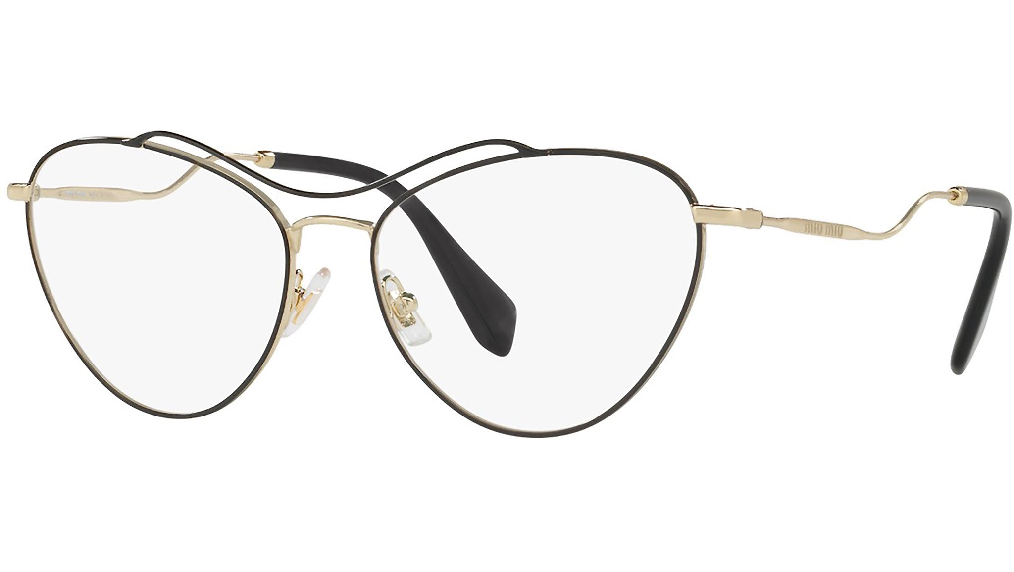 Montatura da vista Miu Miu modello MU 53PV codice colore 1AB1O1 con montatura color nero / oro pallido in metallo e lenti demo. Miu Miu offre creazioni uniche, in cui la costante ricerca stilistica si combina perfettamente con la maestria artigianale della lavorazione. Le silhouette femminili e sinuose delle montature sono espressione di una ricchezza dei dettagli che rispecchia pienamente i codici stilistici e l’indiscusso talento del brand nell’unire il design non convenzionale ad un romanticismo dai rimandi retrò.