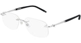 Montblanc Eyewear model MB0071O 002 featuring shiny silver frame and silver temple. Montblanc revolutionized the culture of writing with breakthrough innovations. Today, the Maison continues to push boundaries and evolve the expression of fine craftsmanship across each of its product categories: the pinnacle of luxury writing instruments, timepieces, leather goods, accessories, fragrances and eyewear.