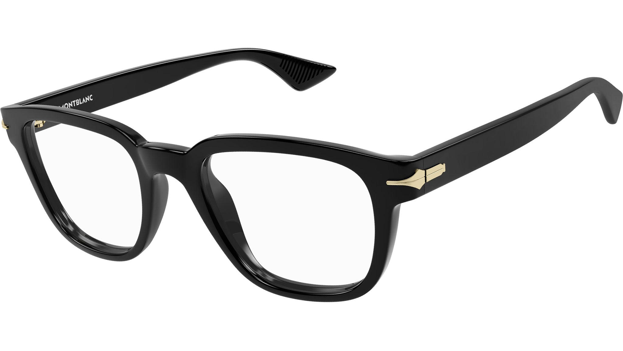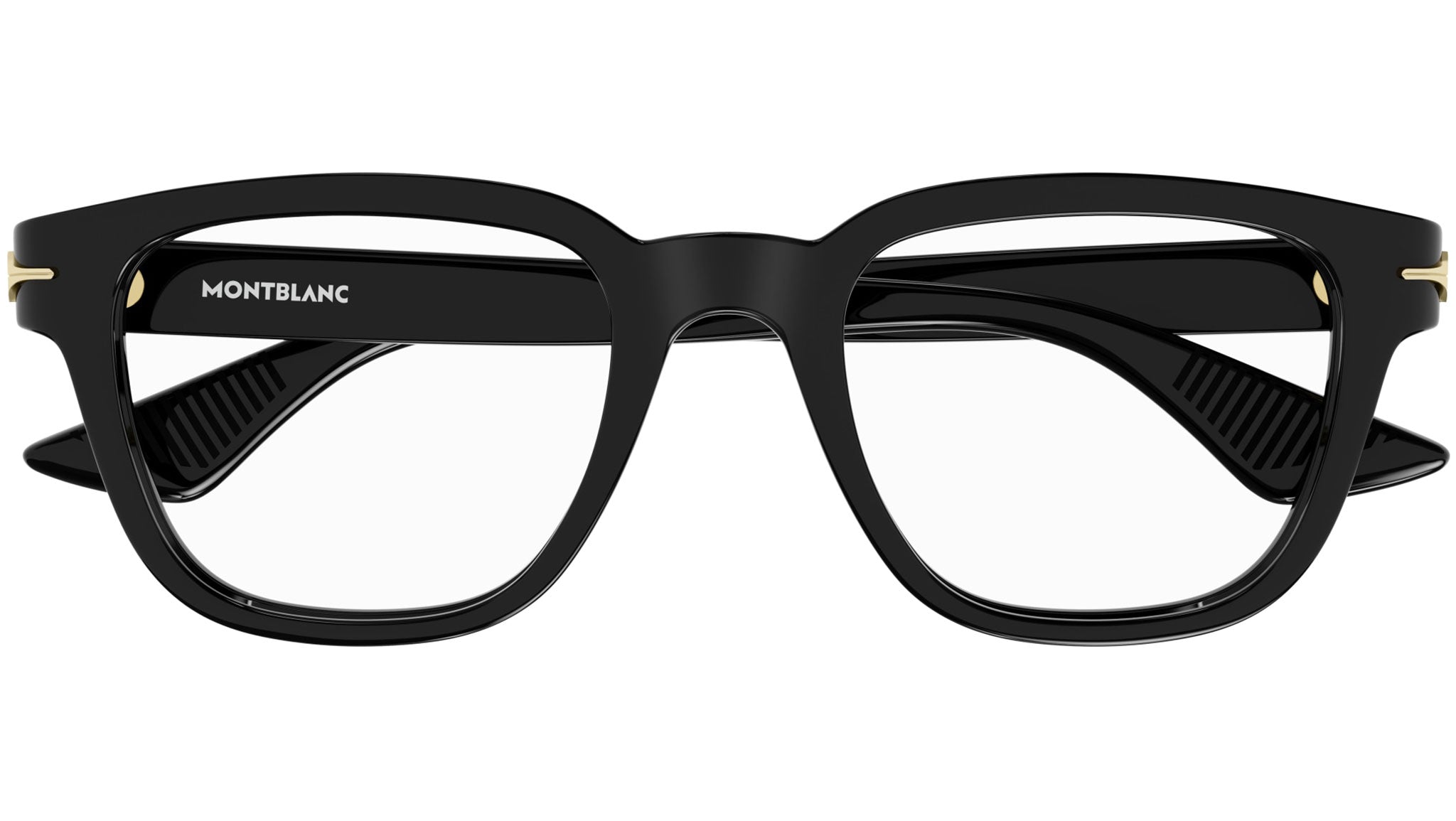 Occhiali da vista Montblanc modello MB0305O rectangle linea Nib in acetato riciclato, codice colore 001 nero lucido tinta unita con aste color nero e lenti demo.