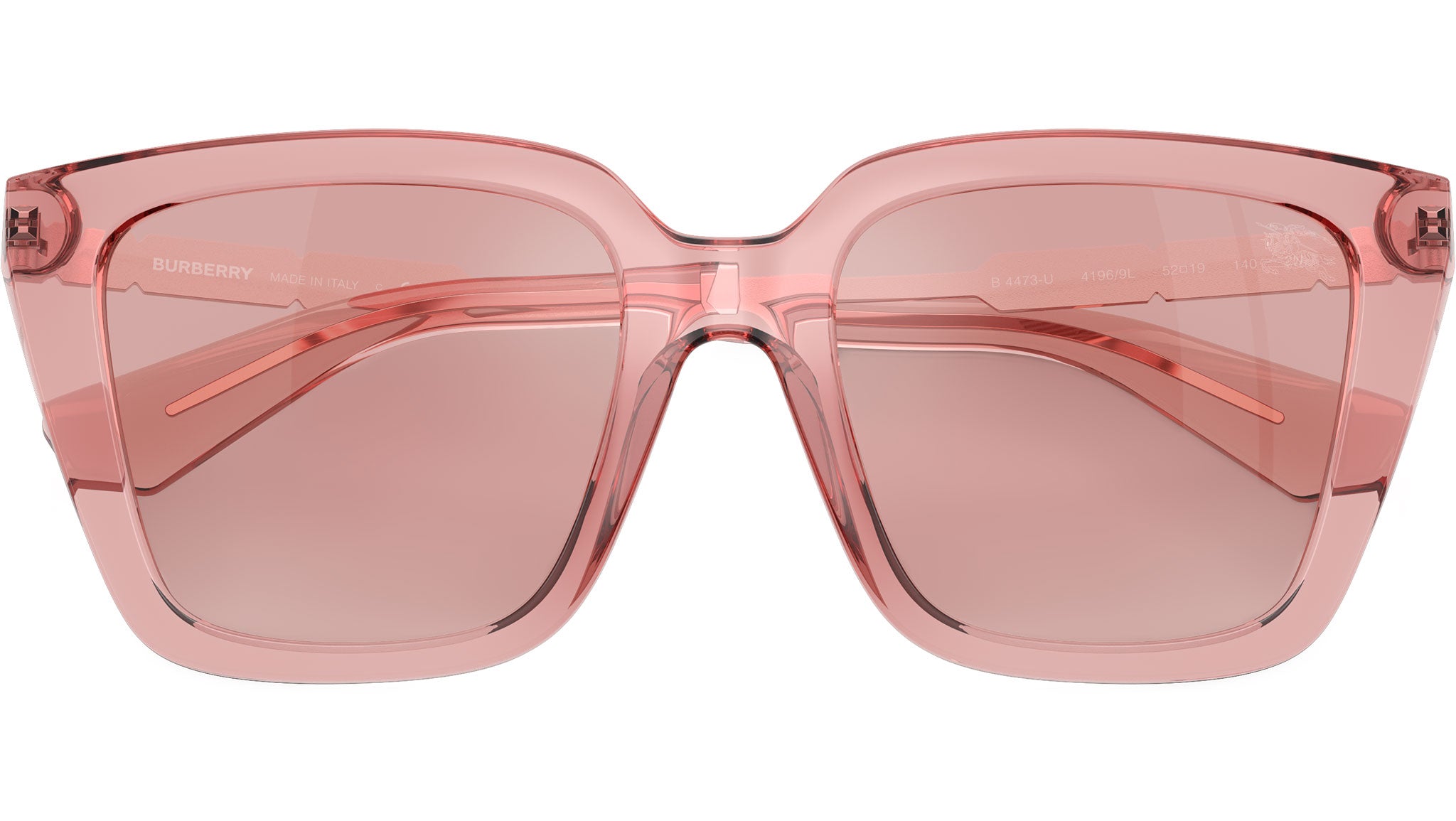 Occhiali da sole Burberry donna modello BE4473U 41969L con montatura full rim in iniettato rosa e lenti in bio poliammide viola chiaro flash argento. Fit universale. Fitting consigliato: XL. Linea: Engraved Check. Codice modello: 0BE4473U. Codice colore: 41969L. Rivenditore autorizzato online Burberry. Gli occhiali includono la custodia e gli accessori originali e sono coperti da una garanzia globale di 12 mesi.