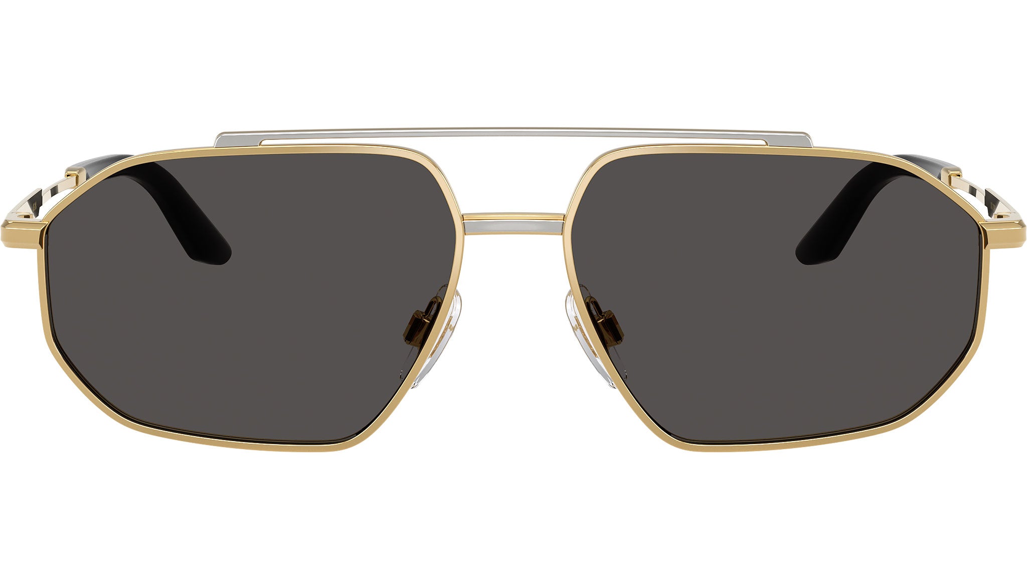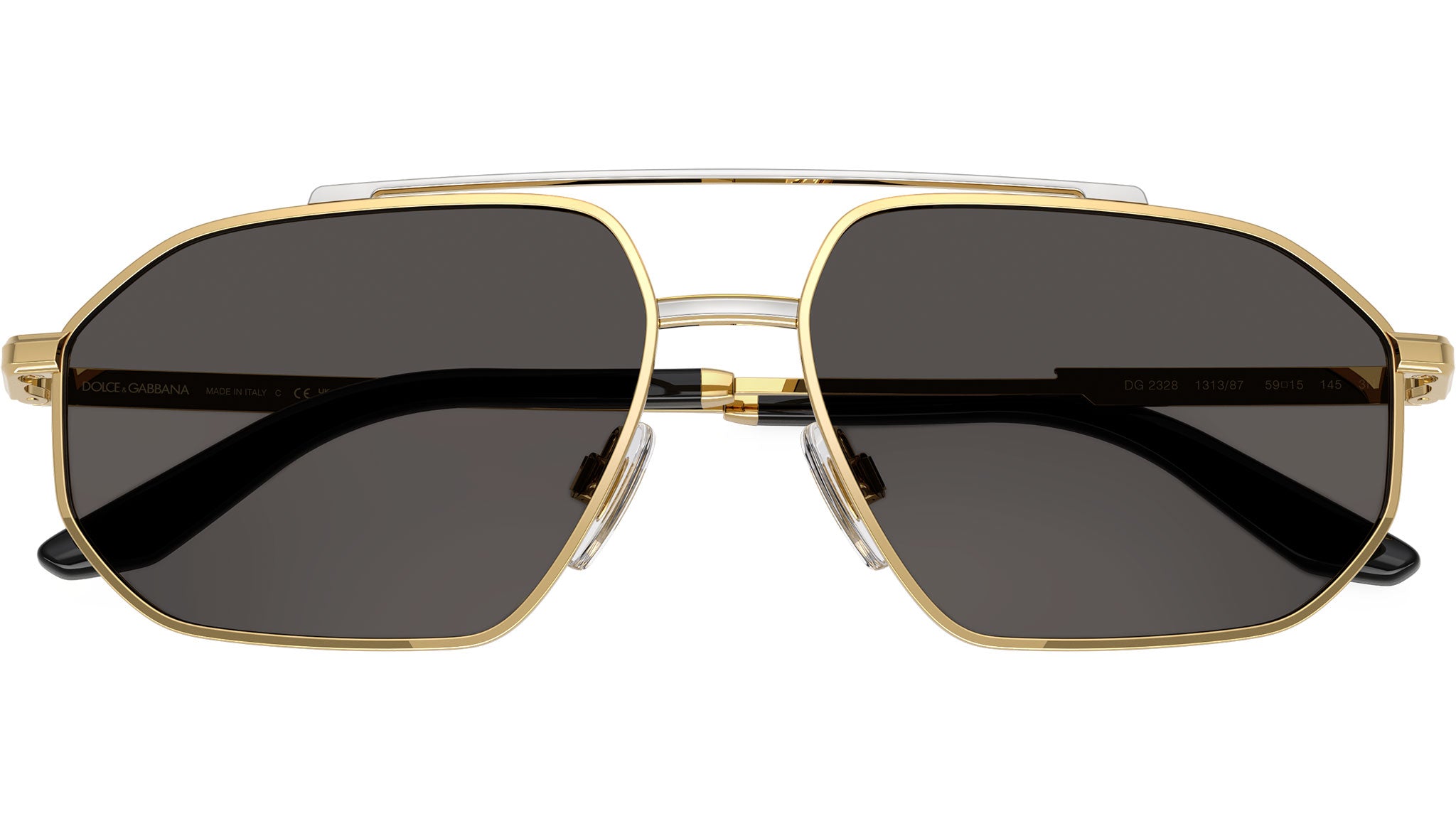 Occhiali da sole Dolce & Gabbana DG 2328 131387 uomo con montatura aviatore in metallo oro / argento e lenti in policarbonato color grigio scuro. Naselli regolabili. Linea: Smart. Codice modello: 0DG2328. Codice colore: 131387. Made in Italy. Rivenditore autorizzato Dolce & Gabbana online. Gli occhiali vengono consegnati con custodia e accessori originali e sono coperti dalla garanzia ufficiale di 12 mesi del produttore.
