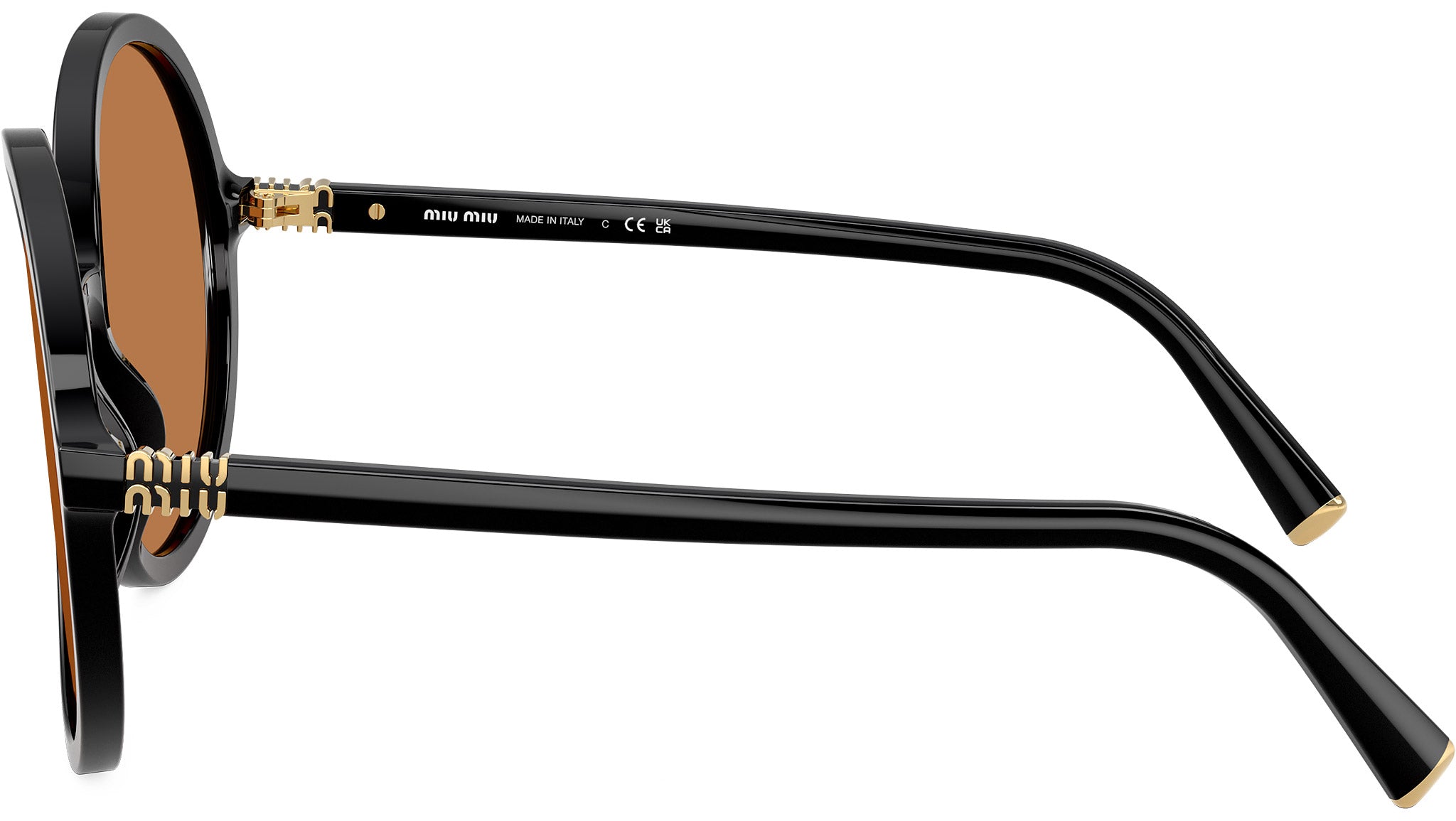 Occhiali da sole Miu Miu MU B02S 16K90Q donna con montatura rotonda in acetato nero e lenti in bio poliammide color marrone. Vestibilità a ponte alto. Linea: Main Collection. Codice modello: 0MU B02S. Codice colore: 16K90Q. Made in Italy. Rivenditore autorizzato Miu Miu online. Gli occhiali vengono consegnati con custodia e accessori originali e sono coperti dalla garanzia ufficiale di 12 mesi del produttore.
