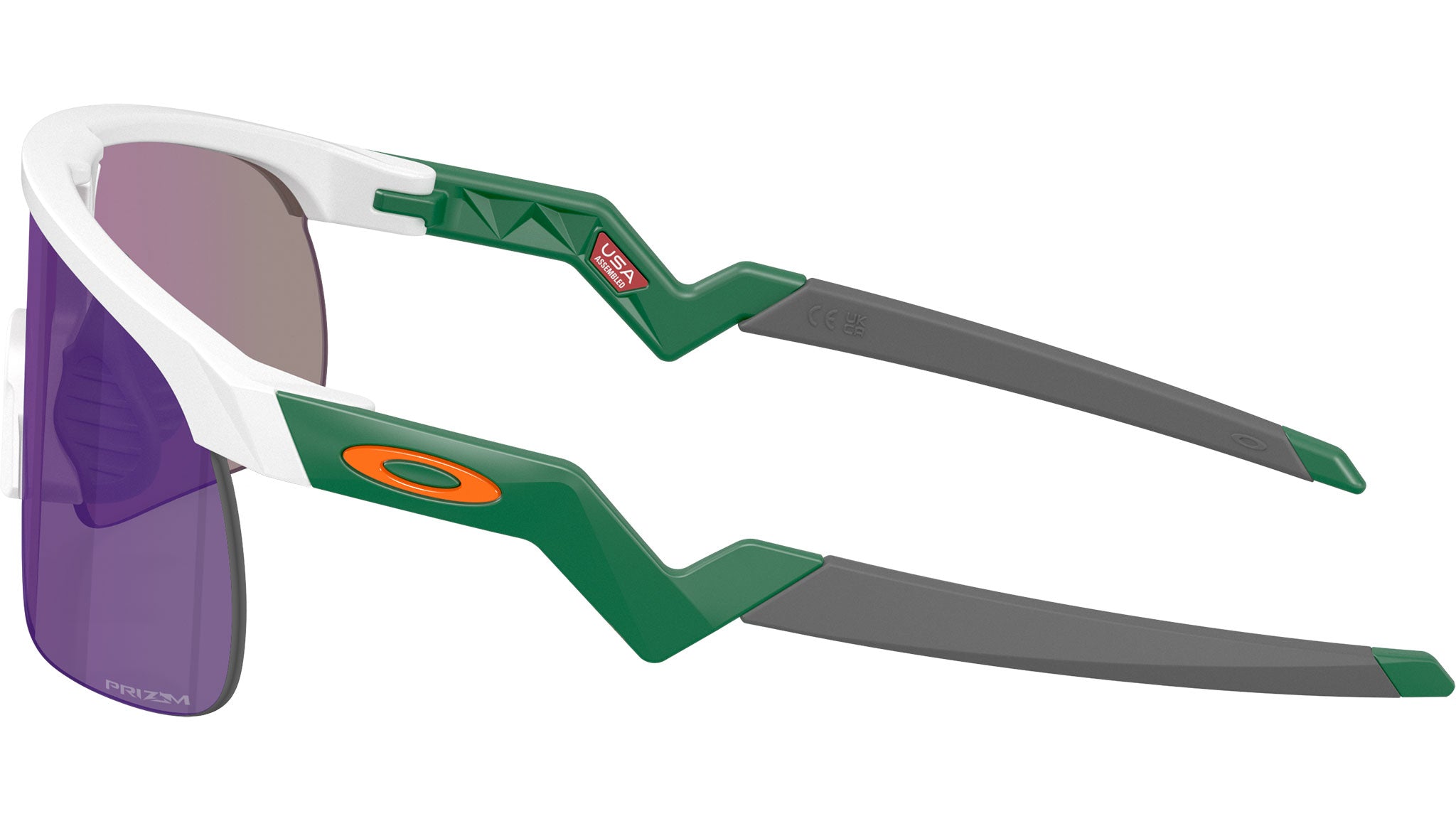 Occhiali da sole Oakley Youth da ragazzo modello OJ9010 con montatura full rim in nylon bianco opaco e lente in policarbonato giada prizm. Vestibilità universale. Linea: Sport Performance. Codice modello: 0OJ9010. Codice colore: 33. Rivenditore autorizzato online Oakley Youth. Gli occhiali includono la custodia e gli accessori originali e sono coperti da una garanzia globale di 12 mesi.
