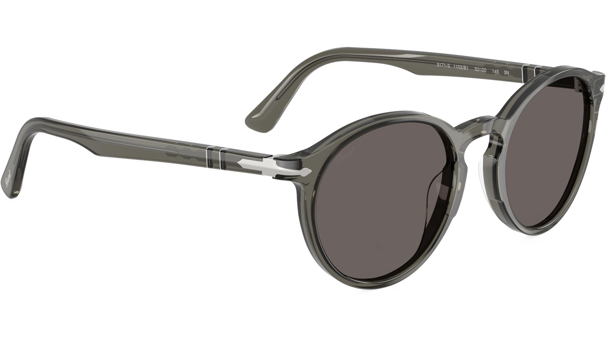 Occhiali da sole Persol uomo modello PO3171S 1103B1 con montatura panthos in acetato grigio topo trasparente e lenti in cristallo grigio scuro base 6. Vestibilità a ponte alto. Linea: Galleria. Codice Brand: 0PO3171S. Codice colore: 1103B1. Rivenditore autorizzato online Persol Eyewear. Ogni prodotto Persol viene consegnato con astuccio originale e accessori ed è coperto da garanzia del produttore di 12 mesi.