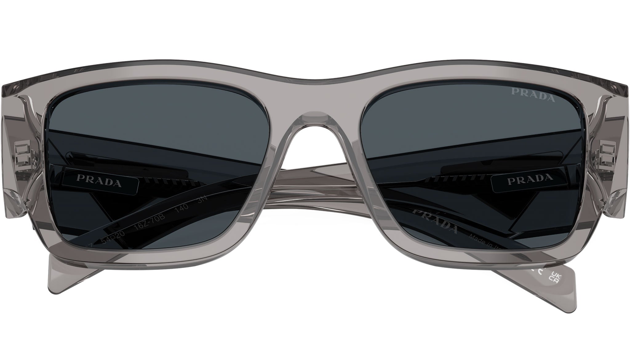 Occhiali da sole Prada PR 10ZS 16Z70B uomo con montatura d-frame in acetato asfalto trasparente e lenti in bio poliammide color grigio scuro. Vestibilità a ponte alto. Linea: Catwalk. Codice modello: PR10ZS. Codice colore: 16Z70B. Made in Italy. Rivenditore autorizzato Prada online. Gli occhiali vengono consegnati con custodia e accessori originali e sono coperti dalla garanzia ufficiale di 12 mesi del produttore.
