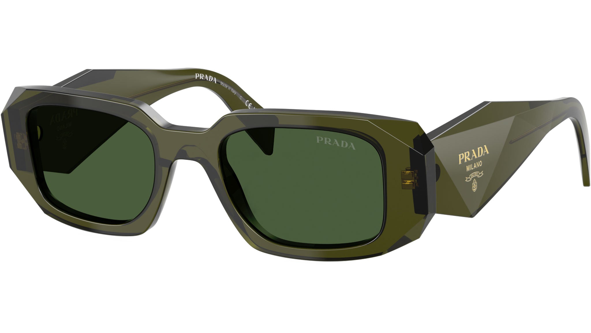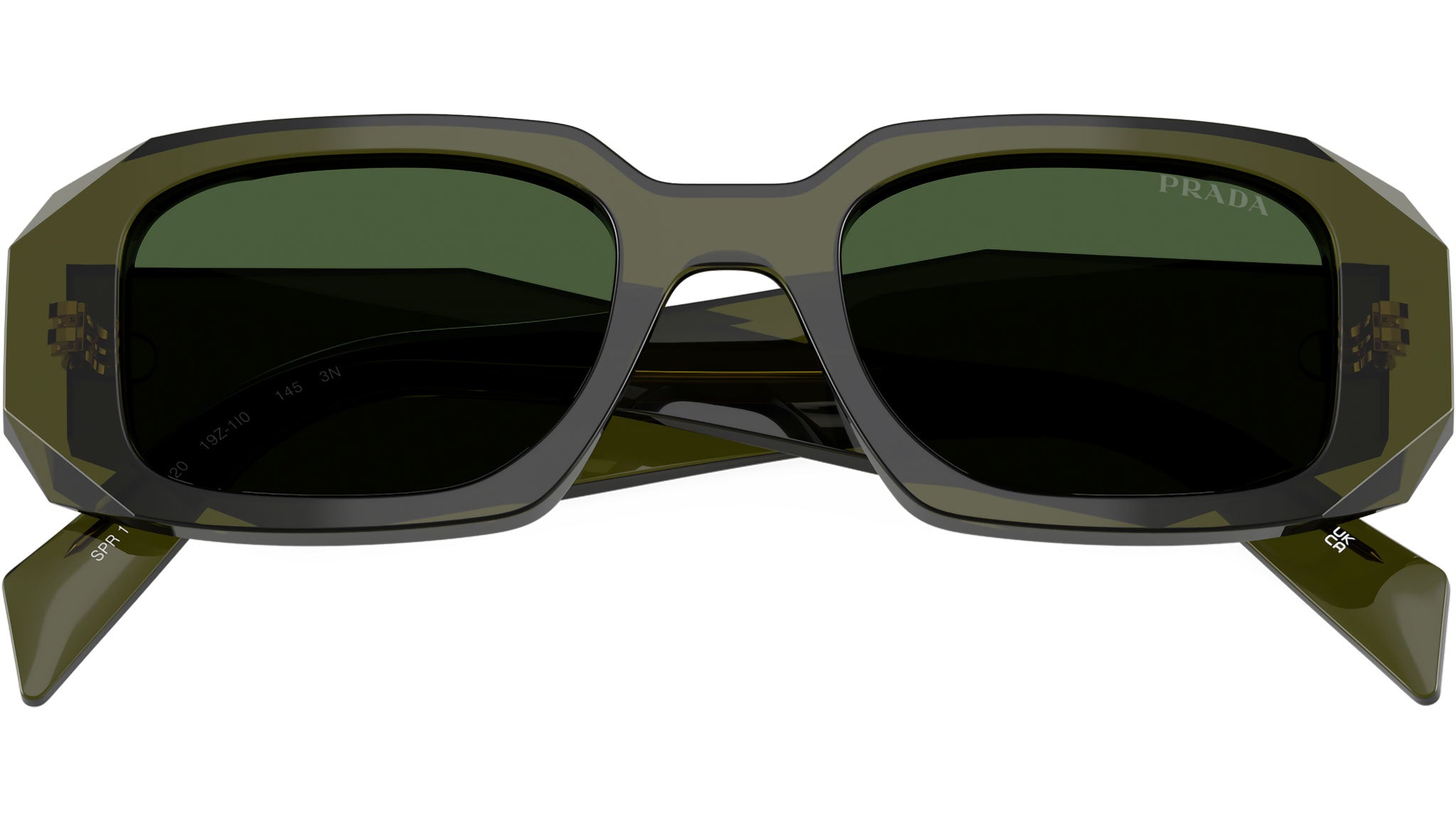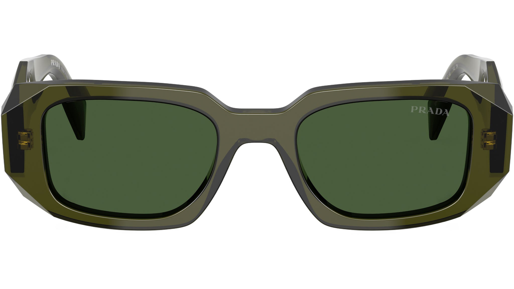 PR 17WS 19Z1I0 Occhiali da Sole Rettangolari Verde Bottiglia Trasparente
