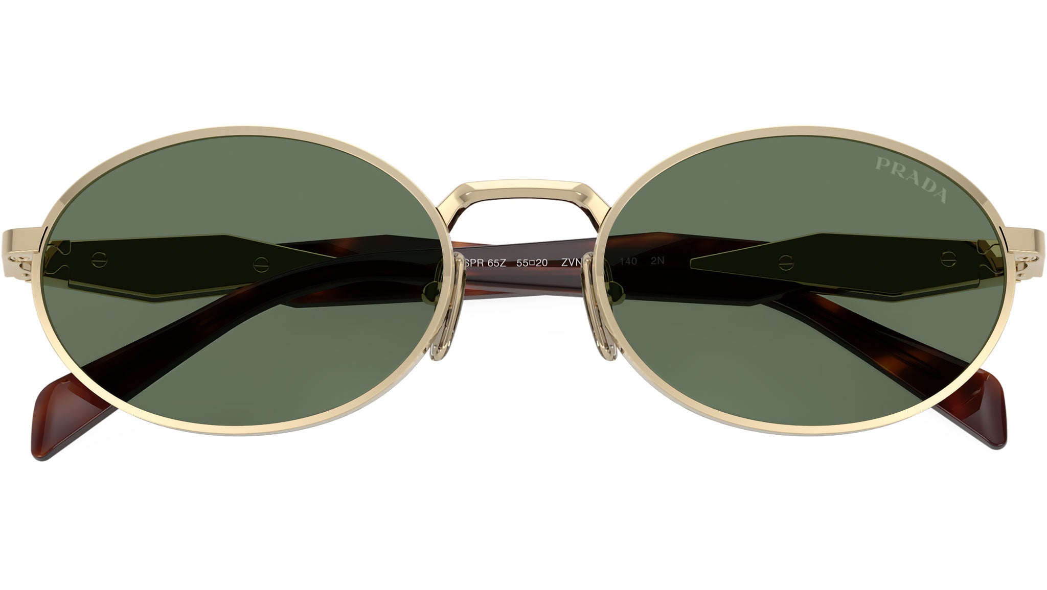 Occhiali da sole Prada PR 65ZS ZVN70L donna con montatura ovale in metallo oro pallido e lenti in bio poliammide color verde scuro. Naselli regolabili. Linea: Signature. Codice modello: PR65ZS. Codice colore: ZVN70L. Made in Italy. Rivenditore autorizzato Prada online. Gli occhiali vengono consegnati con custodia e accessori originali e sono coperti dalla garanzia ufficiale di 12 mesi del produttore.