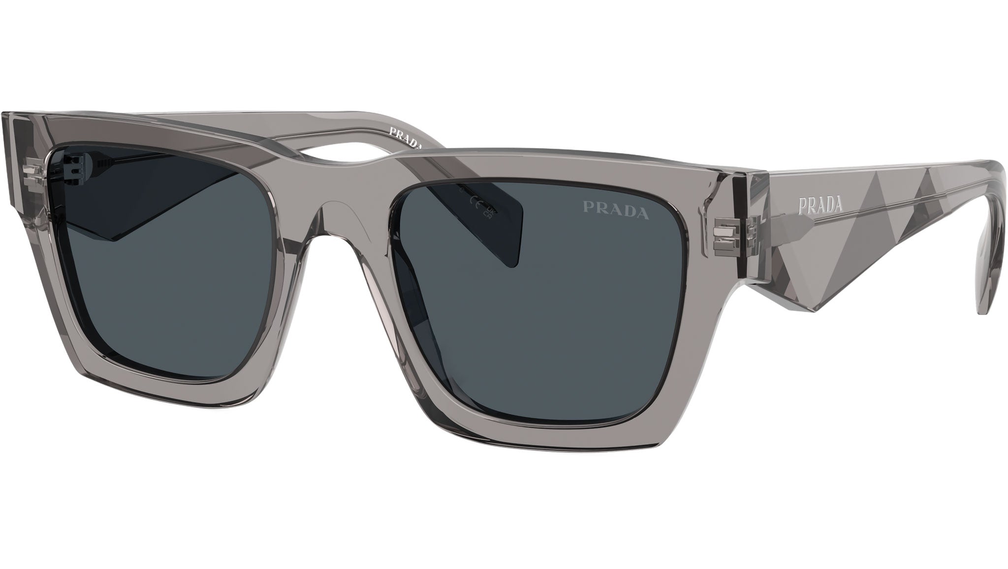 Occhiali da sole Prada PR A06S 16Z70B uomo con montatura d-frame in acetato grigio scuro trasparente e lenti in bio poliammide color grigio scuro. Vestibilità a ponte alto. Linea: Catwalk. Codice modello: PRA06S. Codice colore: 16Z70B. Made in Italy. Rivenditore autorizzato Prada online. Gli occhiali vengono consegnati con custodia e accessori originali e sono coperti dalla garanzia ufficiale di 12 mesi del produttore.