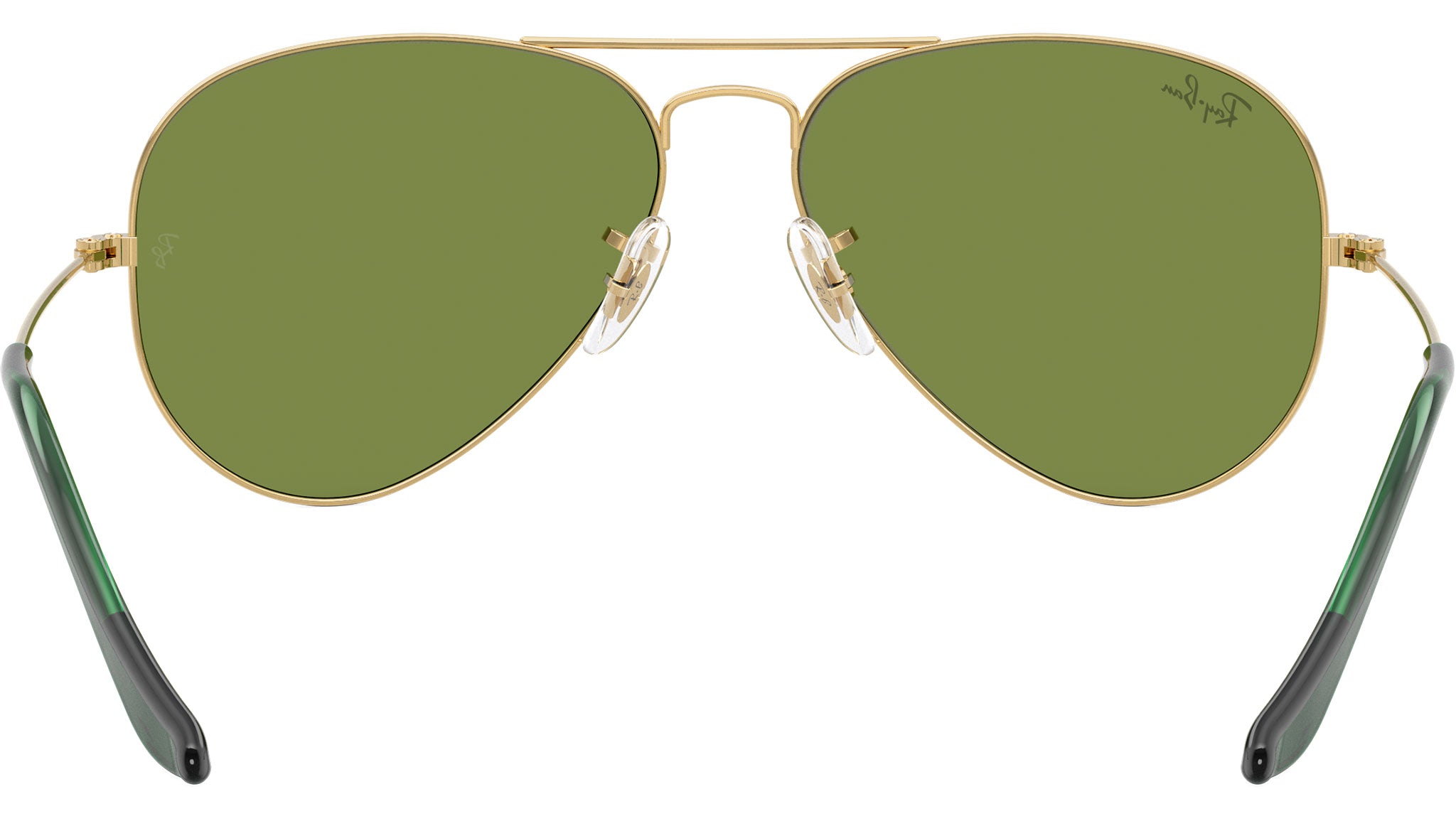 Occhiali da sole Ray-Ban Aviator RB3025 001/4E unisex con montatura aviatore in metallo arista oro e lenti in cristallo color verde. Naselli regolabili. Linea: Legacy. Codice modello: 0RB3025. Codice colore: 001/4E. Rivenditore autorizzato Ray-Ban online. Gli occhiali vengono consegnati con custodia e accessori originali e sono coperti dalla garanzia ufficiale di 12 mesi del produttore.