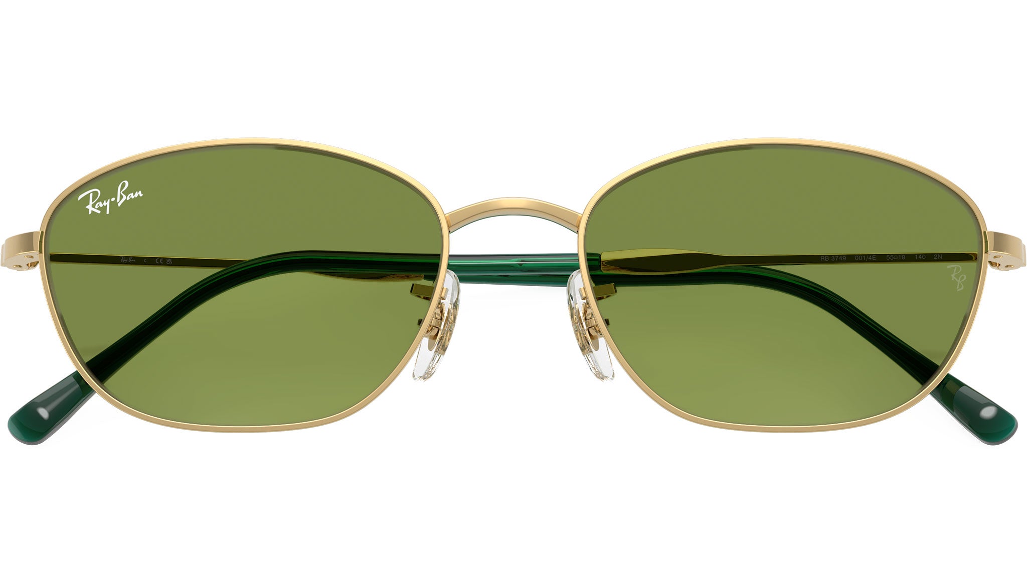 Occhiali da sole Ray-Ban RB3749 001/4E donna con montatura geometrica in metallo arista oro e lenti in cristallo color verde. Naselli regolabili. Linea: Evolution. Codice modello: 0RB3749. Codice colore: 001/4E. Rivenditore autorizzato Ray-Ban online. Gli occhiali vengono consegnati con custodia e accessori originali e sono coperti dalla garanzia ufficiale di 12 mesi del produttore.