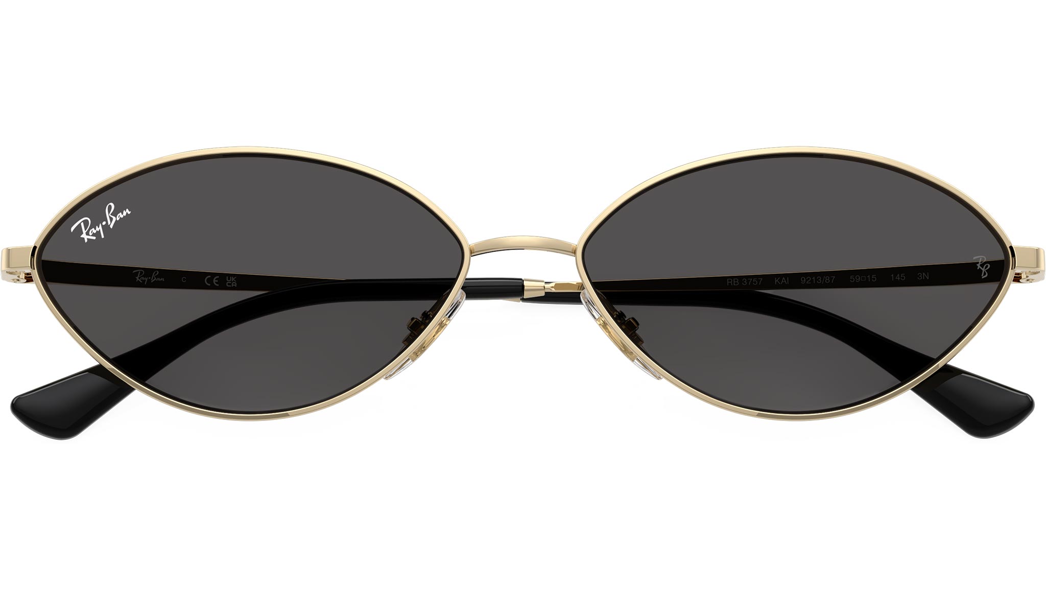 Occhiali da sole Ray-Ban Kai RB3757 921387 unisex con montatura ovale in metallo oro pallido e lenti in bio poliammide color grigio scuro. Naselli regolabili. Linea: Nowness. Codice modello: 0RB3757. Codice colore: 921387. Rivenditore autorizzato Ray-Ban online. Gli occhiali vengono consegnati con custodia e accessori originali e sono coperti dalla garanzia ufficiale di 12 mesi del produttore.