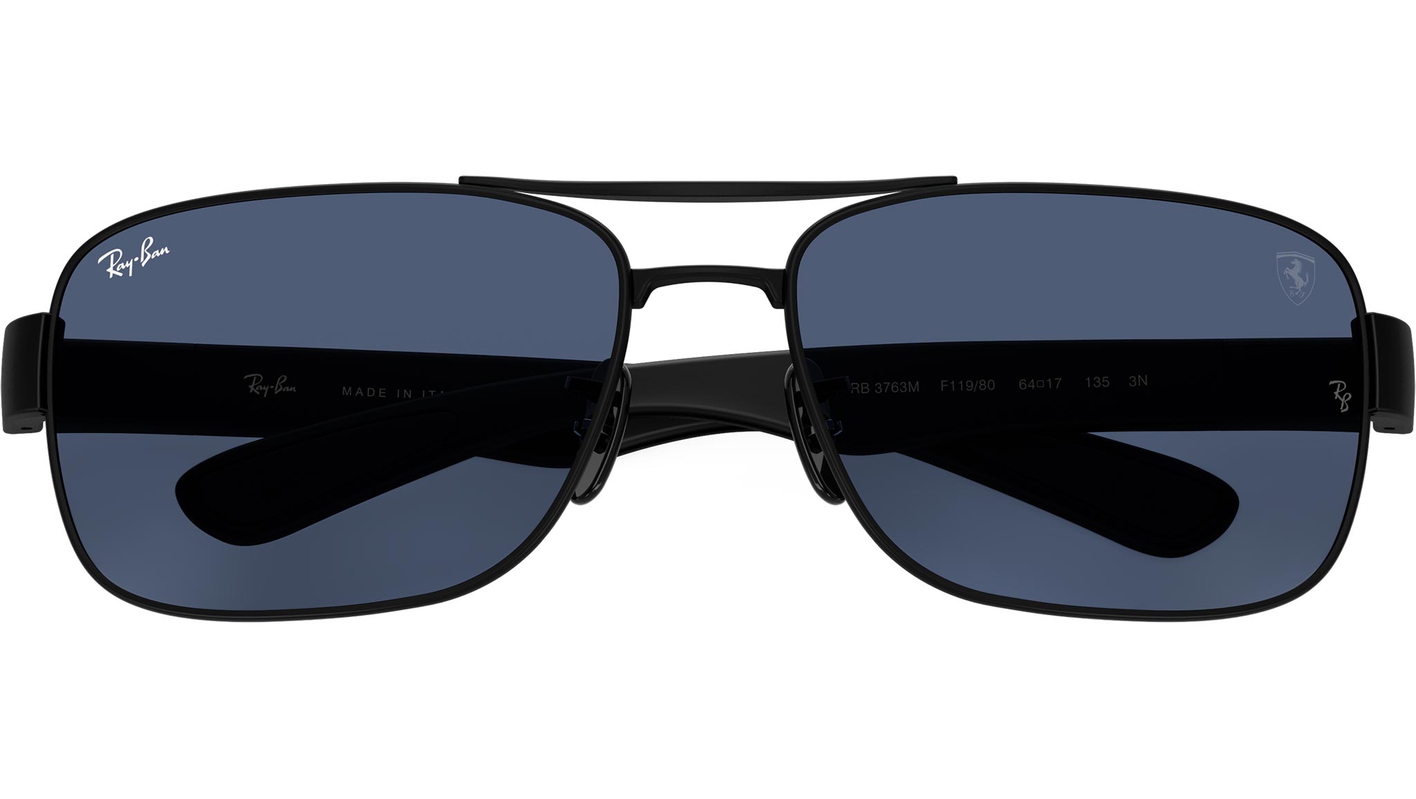 Occhiali da sole Ray-Ban 0RB3763M RB3763M F11980 unisex con montatura squadrata in metallo nero opaco e lenti in policarbonato color blu scuro. Naselli regolabili. Linea: Ferrari. Codice modello: 0RB3763M. Codice colore: F11980. Rivenditore autorizzato Ray-Ban online. Gli occhiali vengono consegnati con custodia e accessori originali e sono coperti dalla garanzia ufficiale di 12 mesi del produttore.