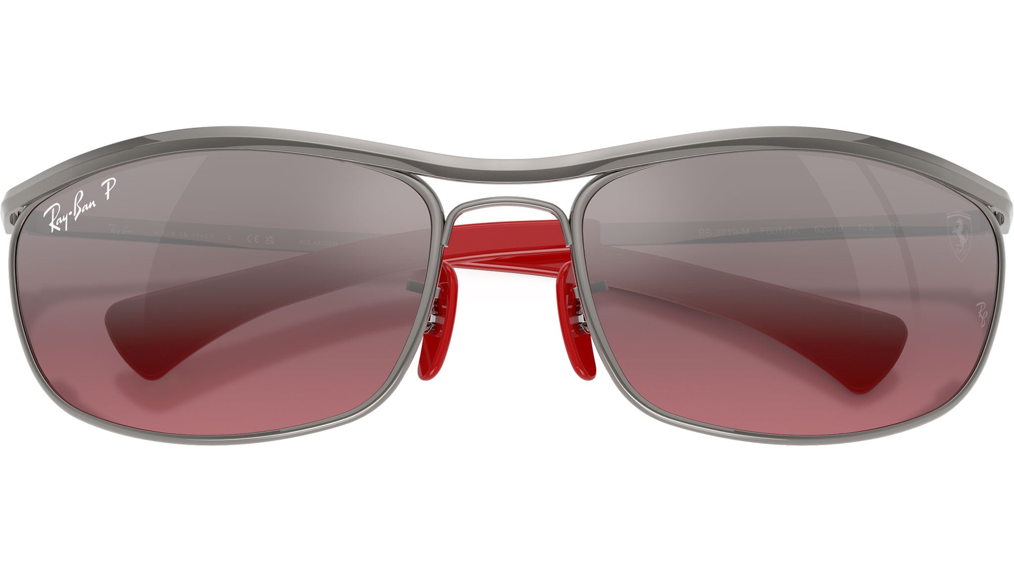 Occhiali da sole Ray-Ban RB3819M F0017A unisex con montatura ovale in metallo canna di fucile e lenti in cristallo color viola. Linea: Ferrari. Codice modello: 0RB3819M. Codice colore: F0017A. Rivenditore autorizzato Ray-Ban online. Gli occhiali vengono consegnati con custodia e accessori originali e sono coperti dalla garanzia ufficiale di 12 mesi del produttore.
