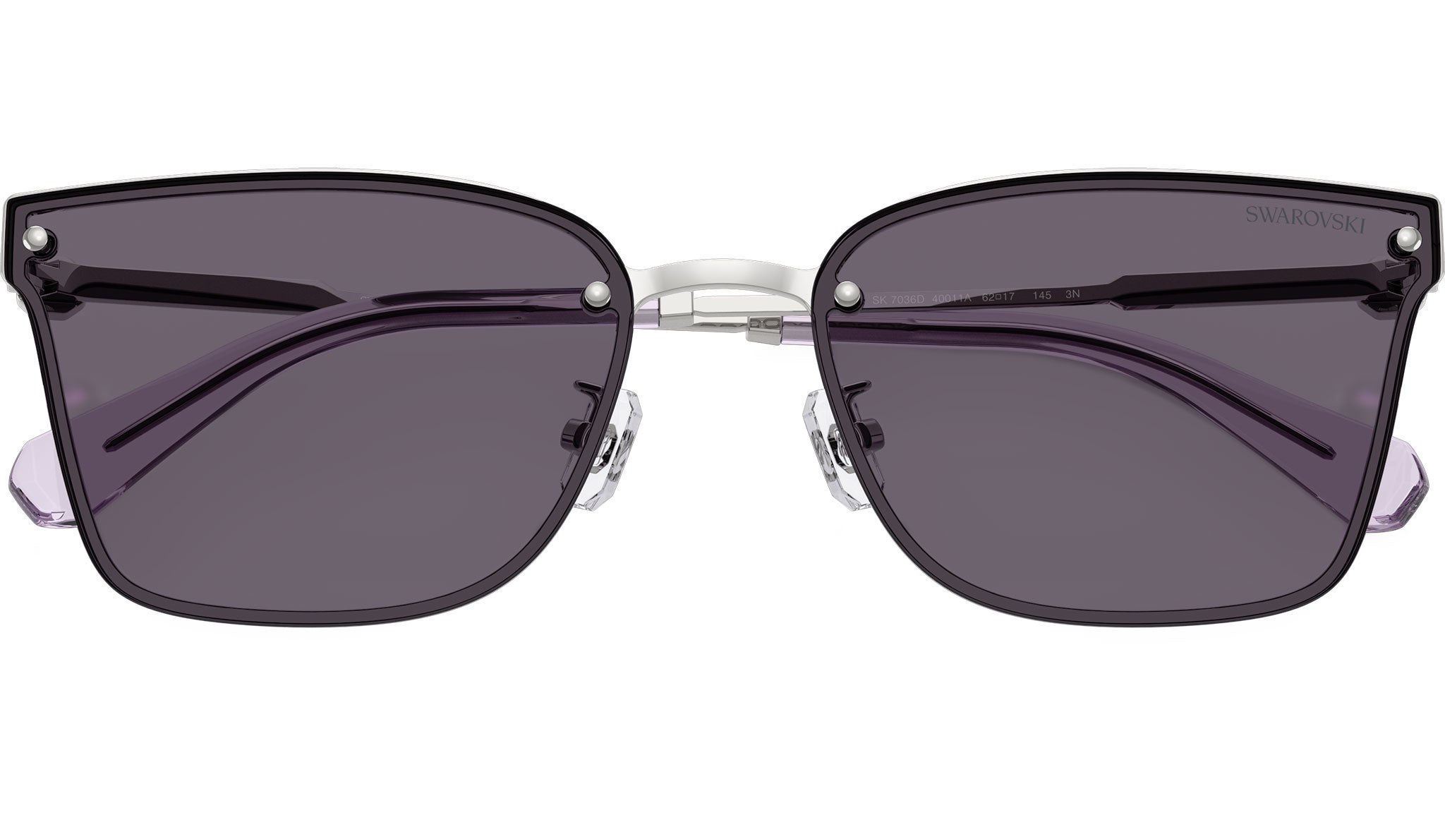 Occhiali da sole Swarovski SK7036D 40011A donna, con montatura geometrica in metallo color argento e lenti viola in poliammide. Vestibilità a ponte basso. Linea: Science of Facets. Codice modello: SK7036D. Codice colore: 40011A. Rivenditore autorizzato Swarovski Eyewear online. Ogni prodotto Swarovski viene consegnato con astuccio originale e accessori ed è coperto da garanzia del produttore di 12 mesi.