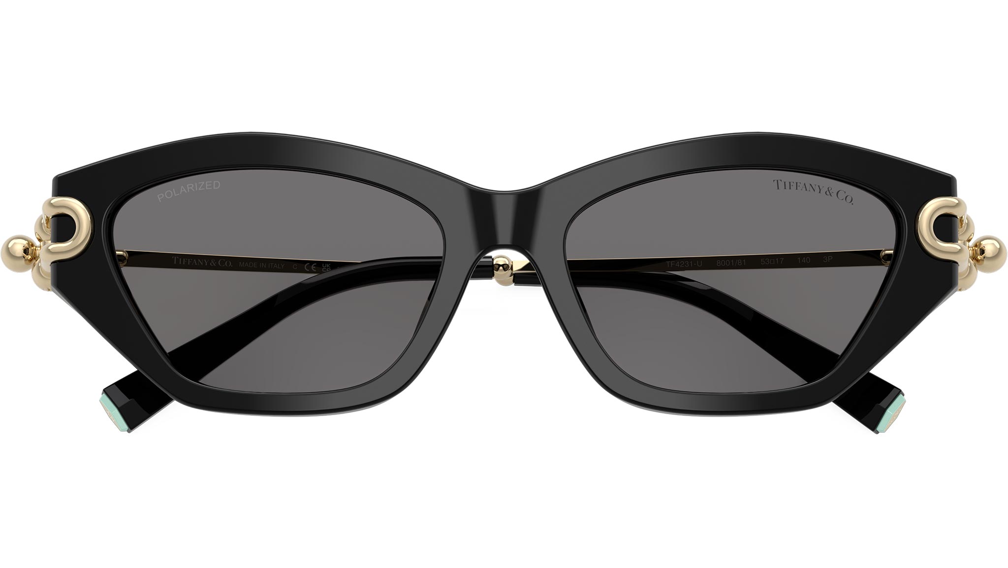 Occhiali da sole Tiffany donna modello TF4231U 800181 con montatura cat eye in acetato nero e lenti in CR-39 grigio scuro polarizzato base 4. Vestibilità a ponte alto. Linea: Icons. Codice Brand: 0TF4231U. Codice colore: 800181. Rivenditore autorizzato online Tiffany Eyewear. Ogni prodotto Tiffany viene consegnato con astuccio originale e accessori ed è coperto da garanzia del produttore di 12 mesi.