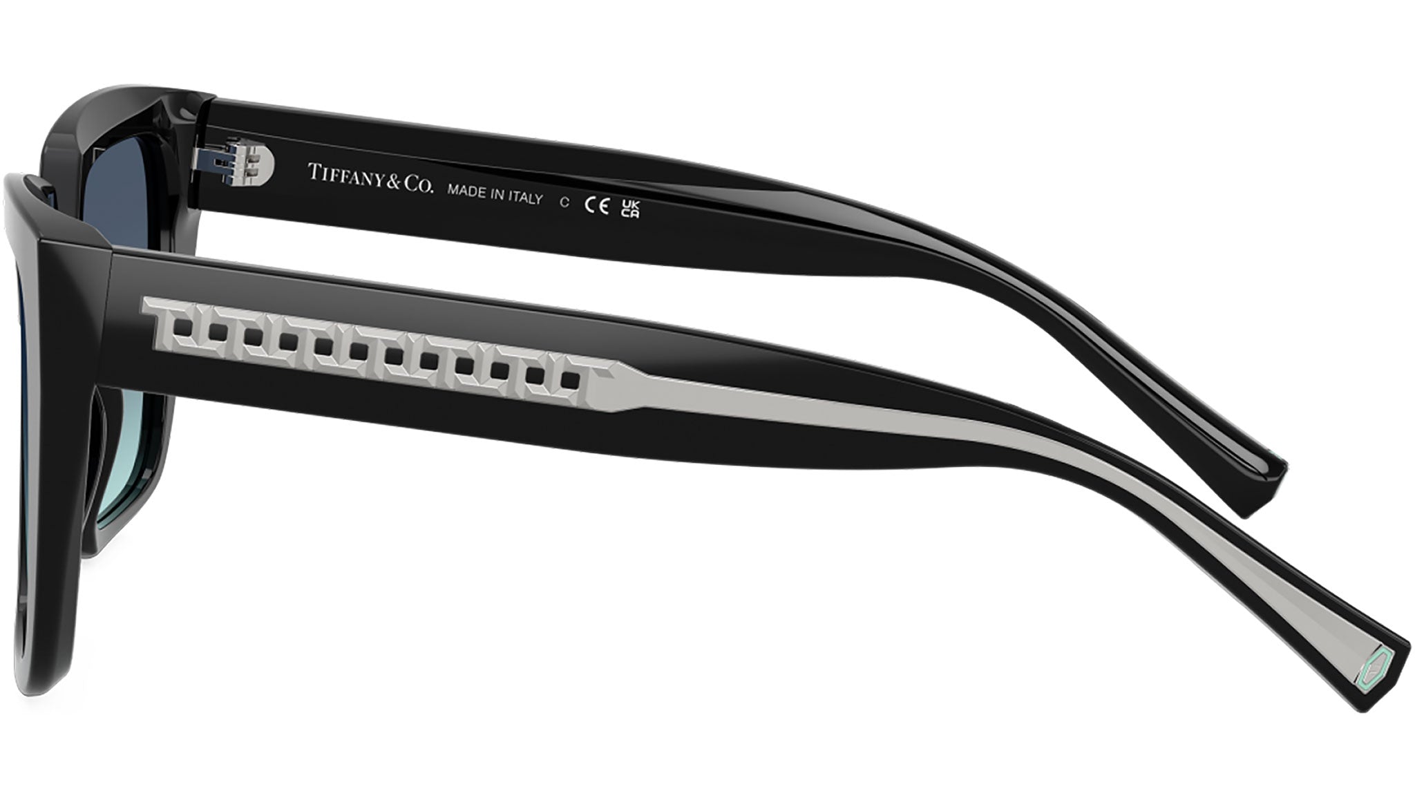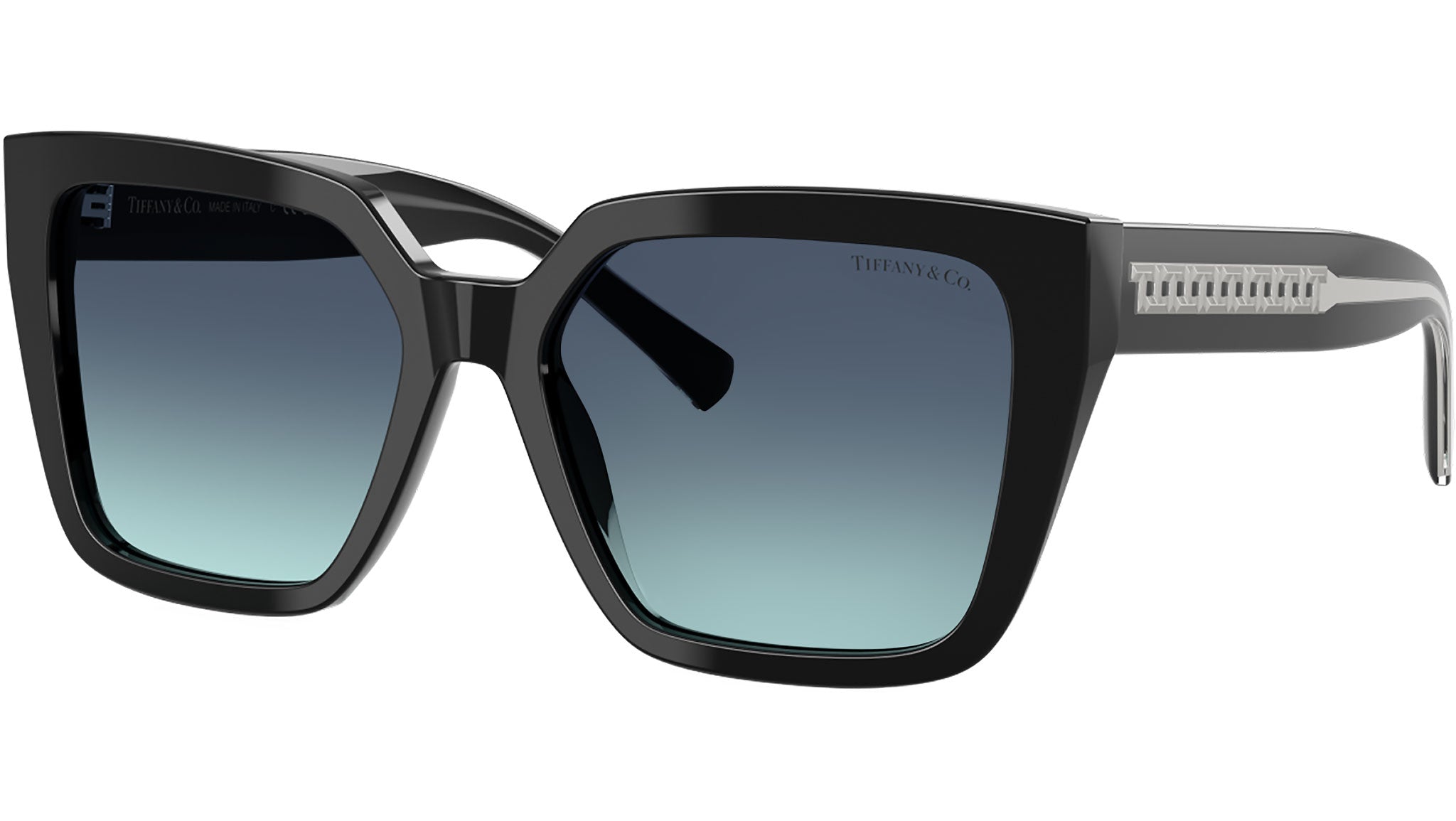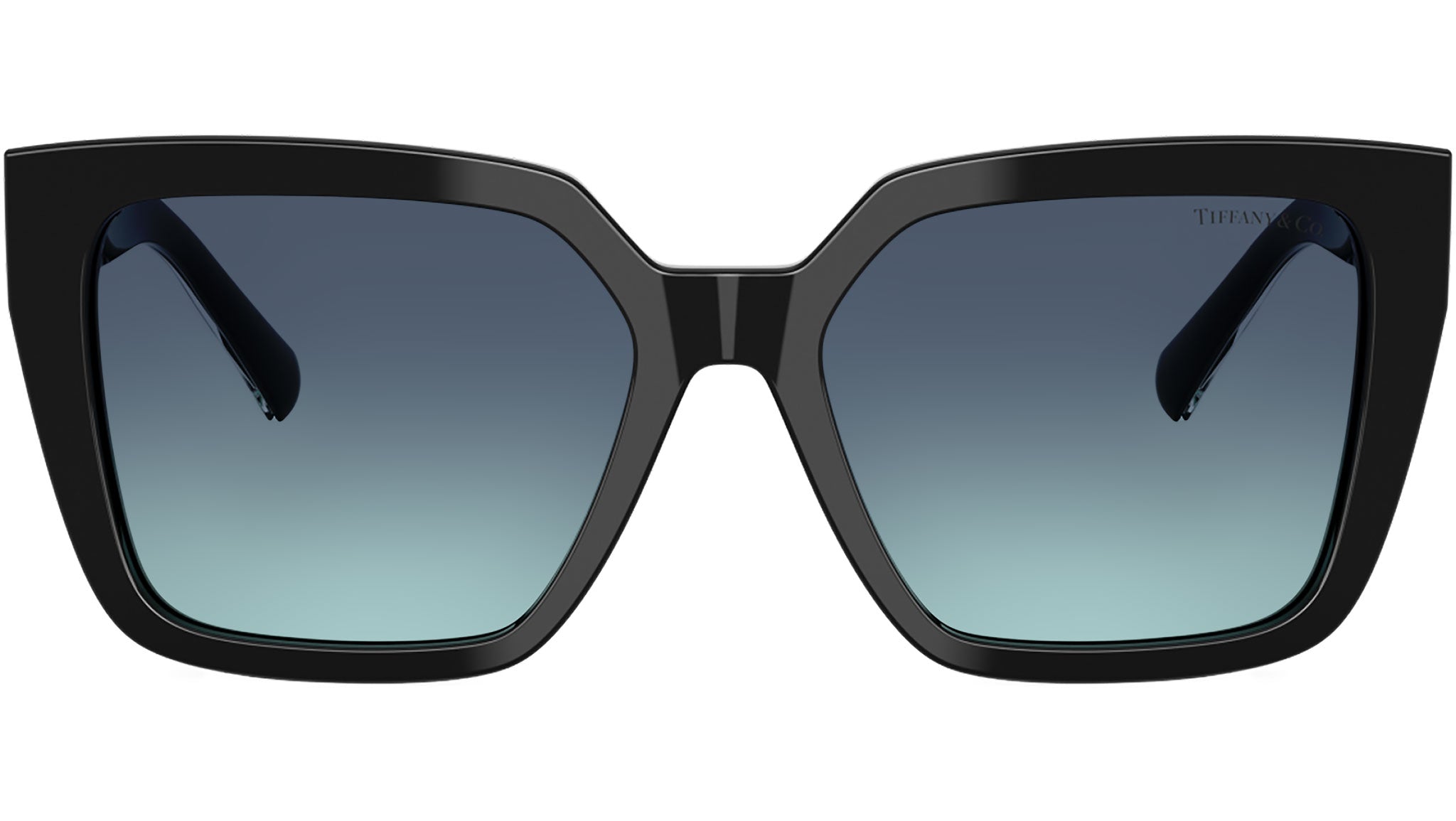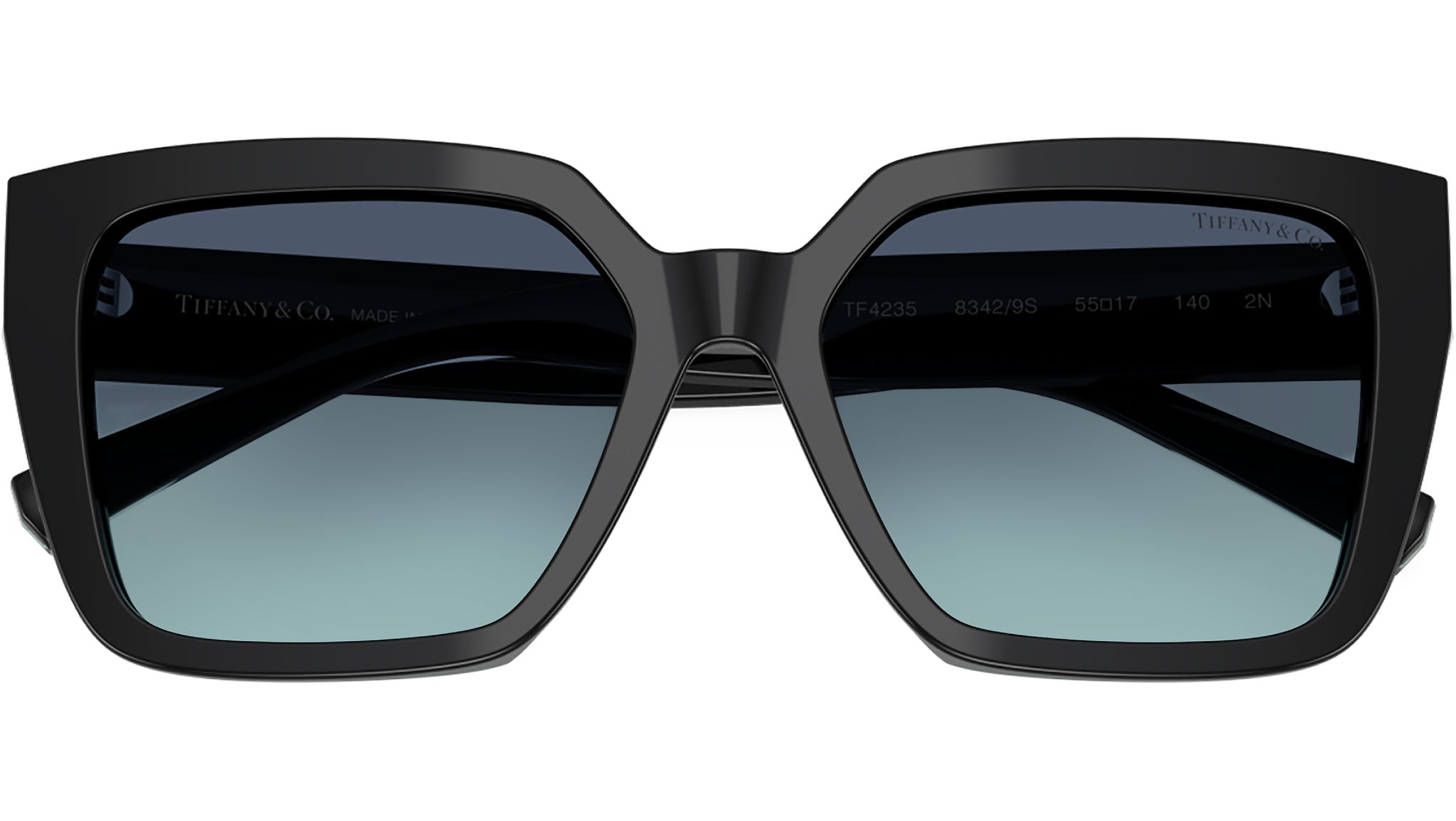 Occhiali da sole Tiffany donna modello TF4235 83429S con montatura squadrata in acetato nero e lenti in bio poliammide blu azzurro sfumato base 4. Vestibilità a ponte alto. Linea: Icons. Codice Brand: 0TF4235. Codice colore: 83429S. Rivenditore autorizzato online Tiffany Eyewear. Ogni prodotto Tiffany viene consegnato con astuccio originale e accessori ed è coperto da garanzia del produttore di 12 mesi.
