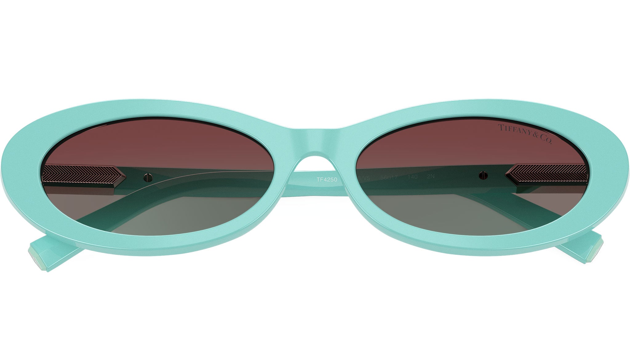 Occhiali da sole Tiffany donna modello TF4250 8388V5 con montatura ovale in acetato blu Tiffany e lenti in bio poliammide azzurro / bordeaux base 4. Vestibilità a ponte alto. Linea: Modern Glamour. Codice Brand: 0TF4250. Codice colore: 8388V5. Rivenditore autorizzato online Tiffany Eyewear. Ogni prodotto Tiffany viene consegnato con astuccio originale e accessori ed è coperto da garanzia del produttore di 12 mesi.