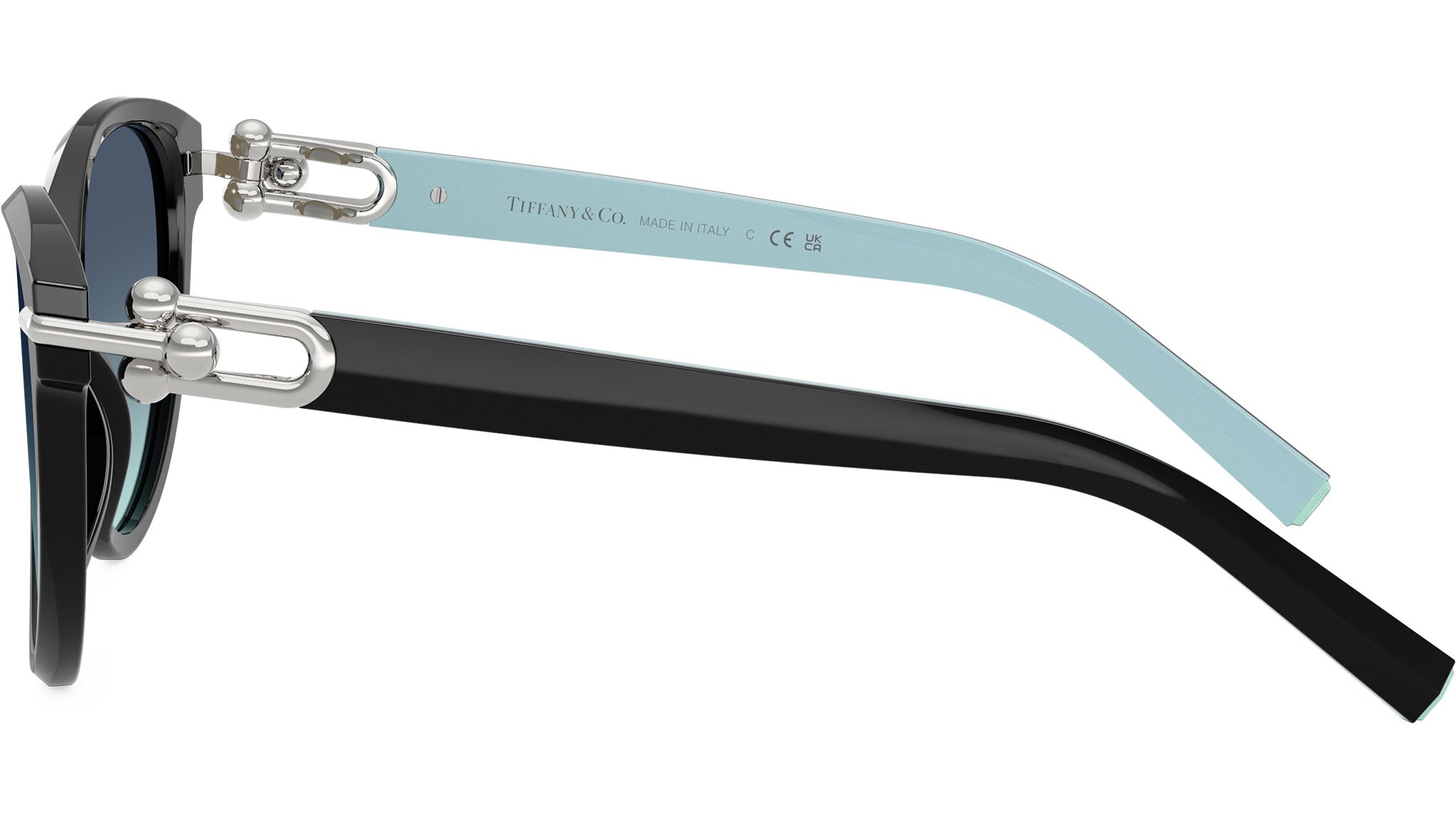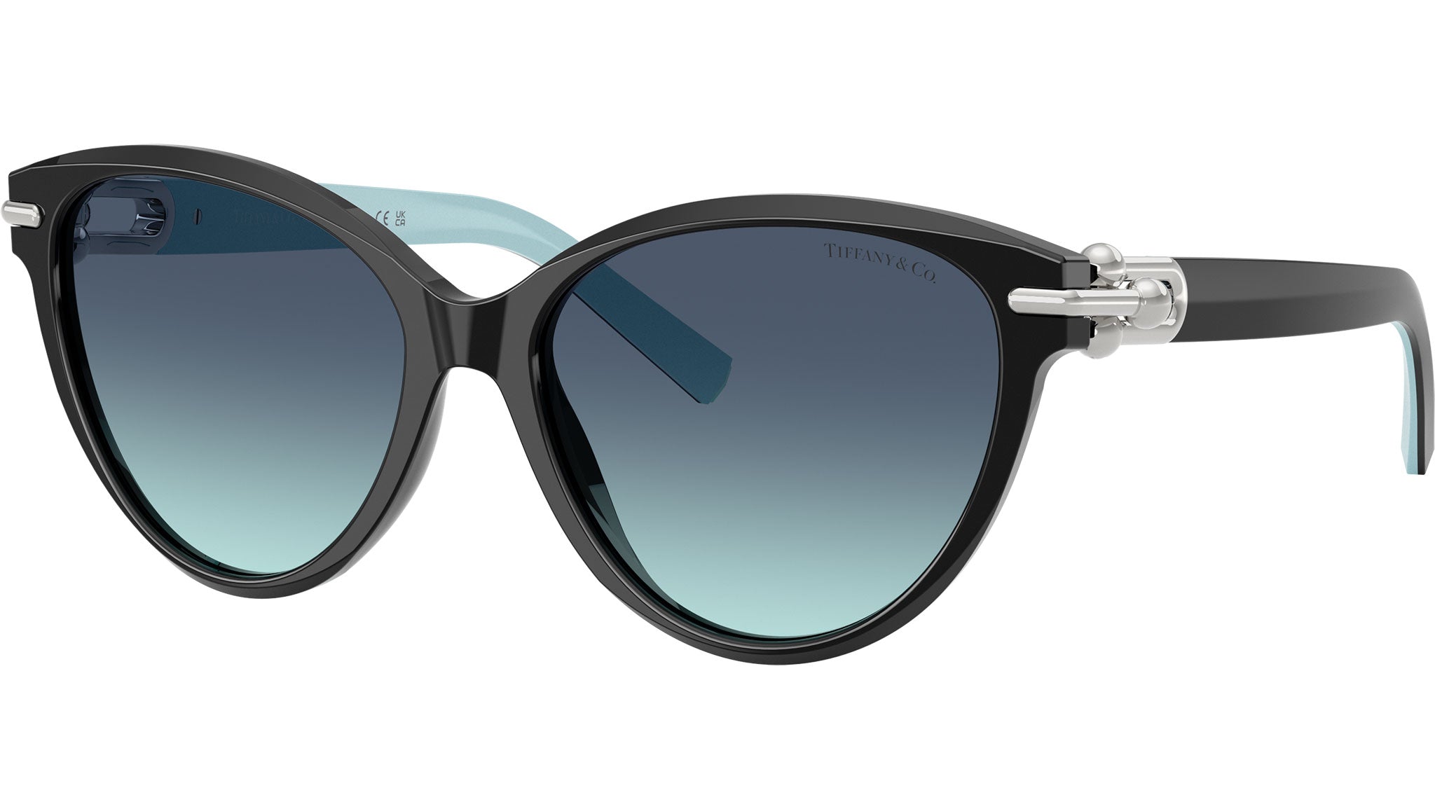 Occhiali da sole Tiffany donna modello TF4261 80559S con montatura cat eye in acetato nero e lenti in bio poliammide blu azzurro sfumato base 4. Vestibilità a ponte alto. Linea: Icons. Codice Brand: 0TF4261. Codice colore: 80559S. Rivenditore autorizzato online Tiffany Eyewear. Ogni prodotto Tiffany viene consegnato con astuccio originale e accessori ed è coperto da garanzia del produttore di 12 mesi.
