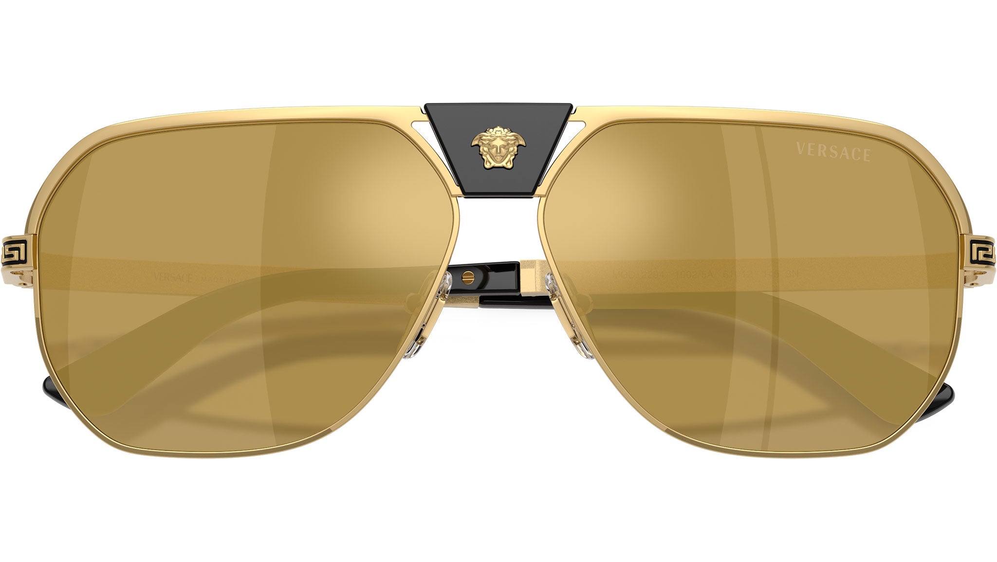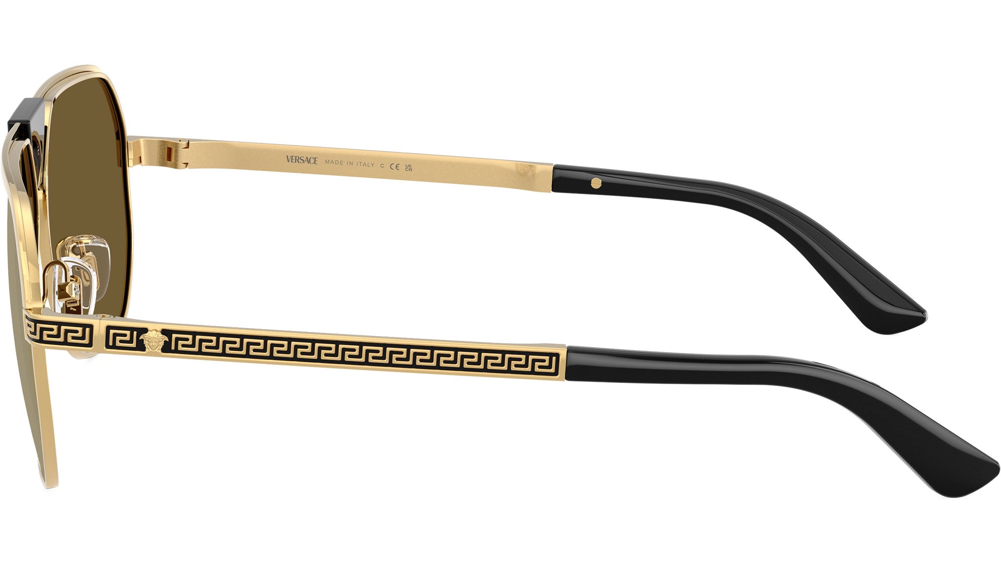 Occhiali da sole Versace uomo modello VE2294 10025A con montatura squadrata in metallo oro e lenti base 4 in policarbonato marrone oro a specchio. Naselli regolabili. Linea: Fashion Id. Codice Brand: 0VE2294. Codice colore: 10025A. Rivenditore autorizzato online Versace Eyewear. Ogni prodotto Versace viene consegnato con astuccio originale e accessori ed è coperto da garanzia del produttore di 12 mesi.