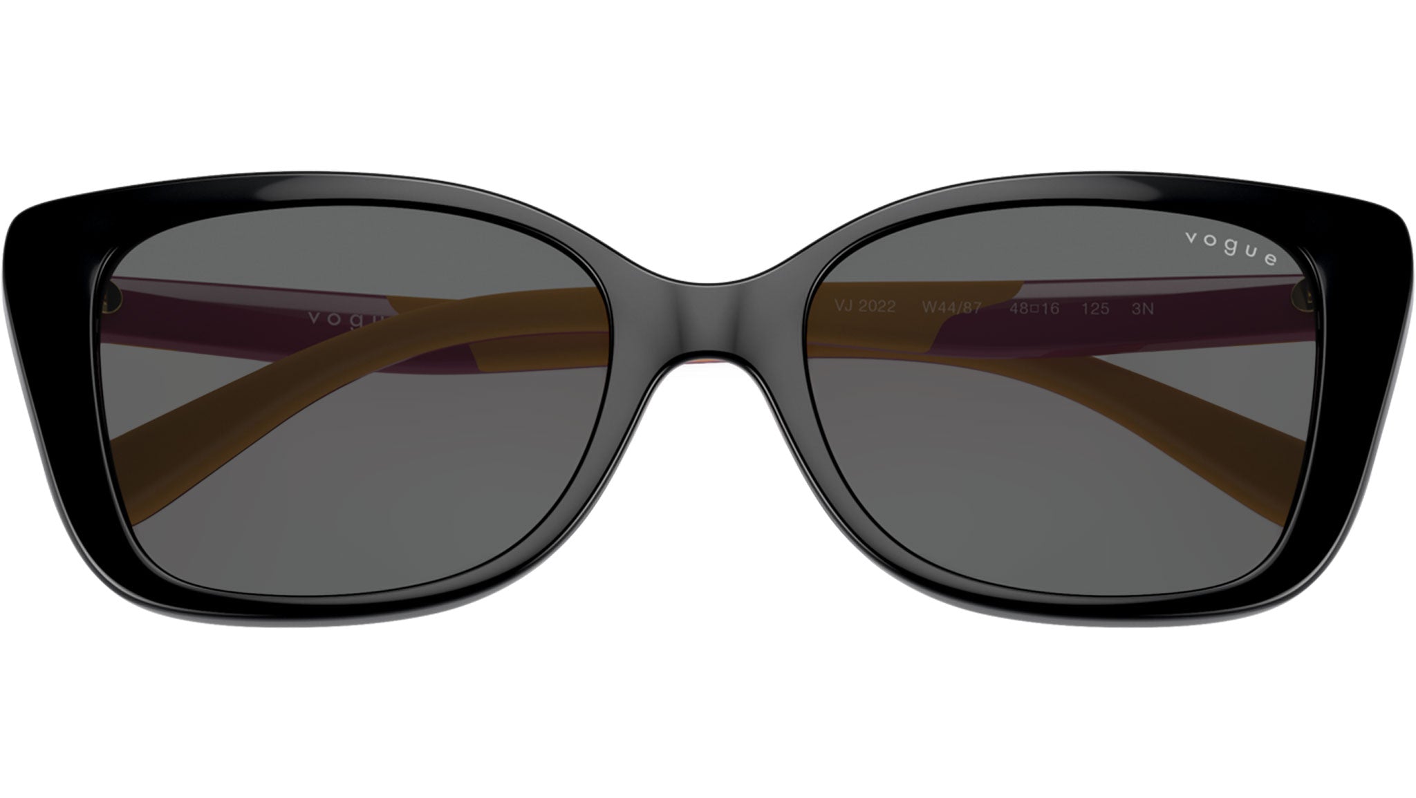 Occhiali da sole Vogue bambina modello VJ2022 W44/87 con montatura a farfalla in nylon nero e lenti base 6 in bio poliammide grigio scuro. Vestibilità a ponte alto. Linea: Kids. Codice Brand: 0VJ2022. Codice colore: W44/87. Rivenditore autorizzato online Vogue Kids. Ogni prodotto Vogue viene consegnato con astuccio originale e accessori ed è coperto da garanzia del produttore di 12 mesi.