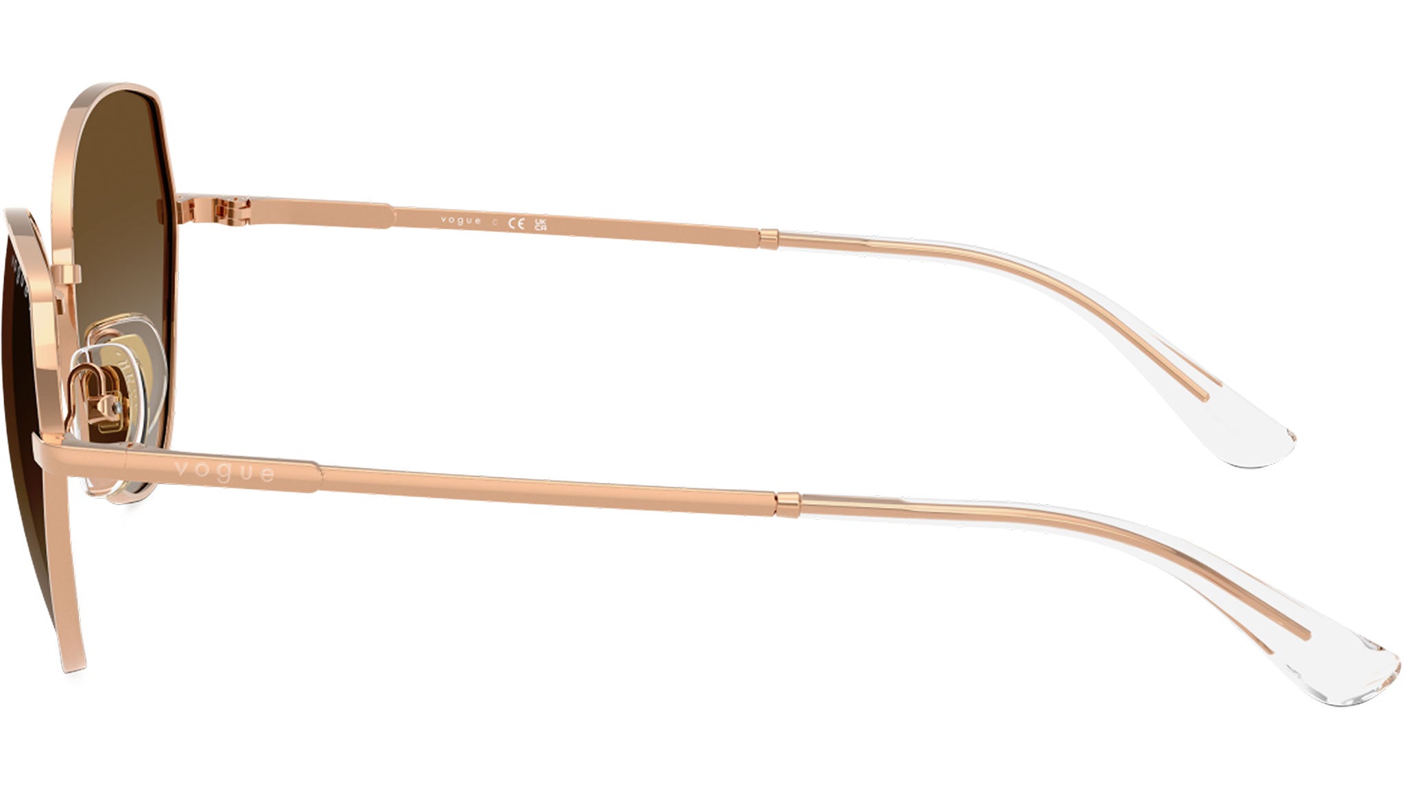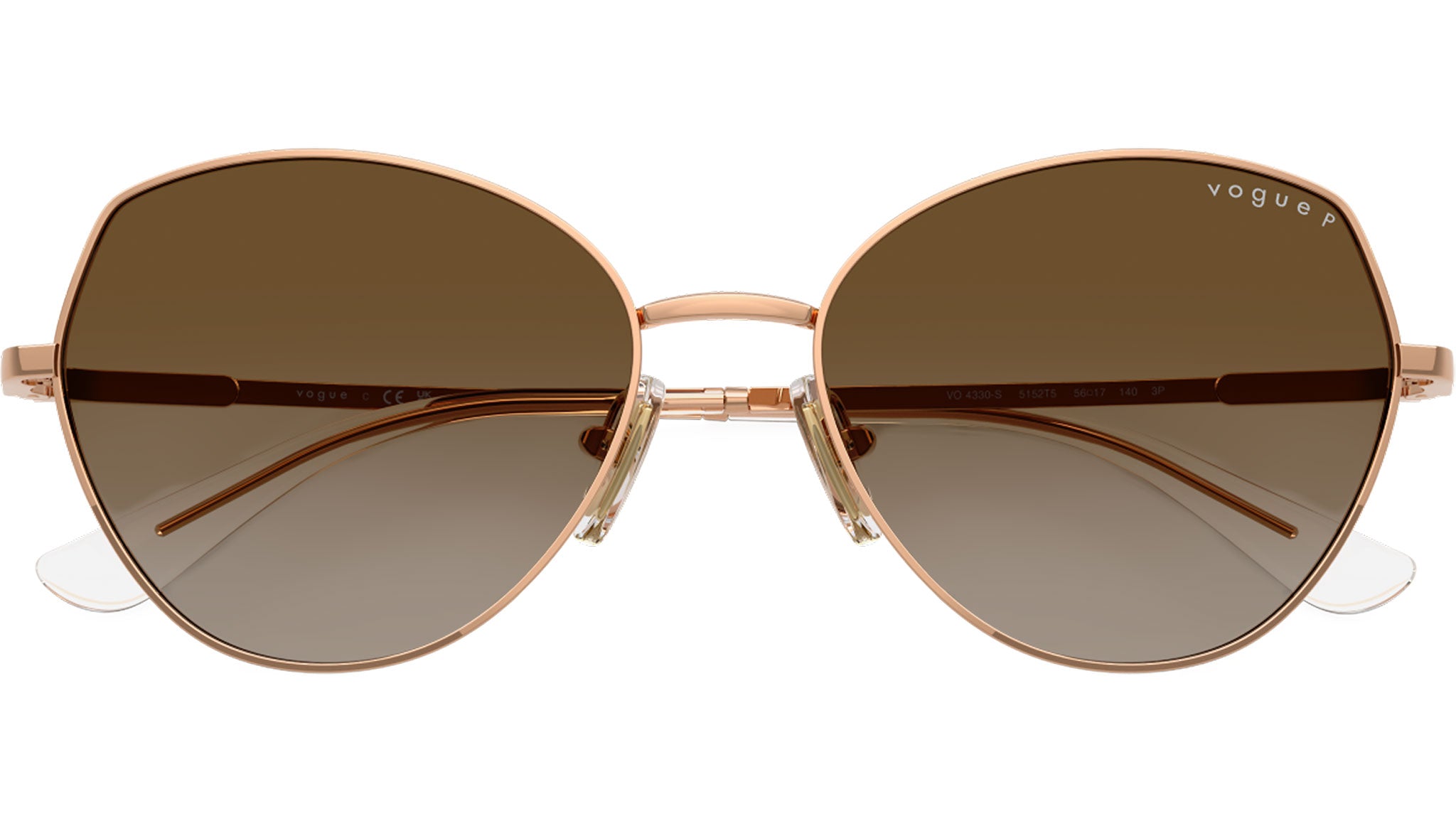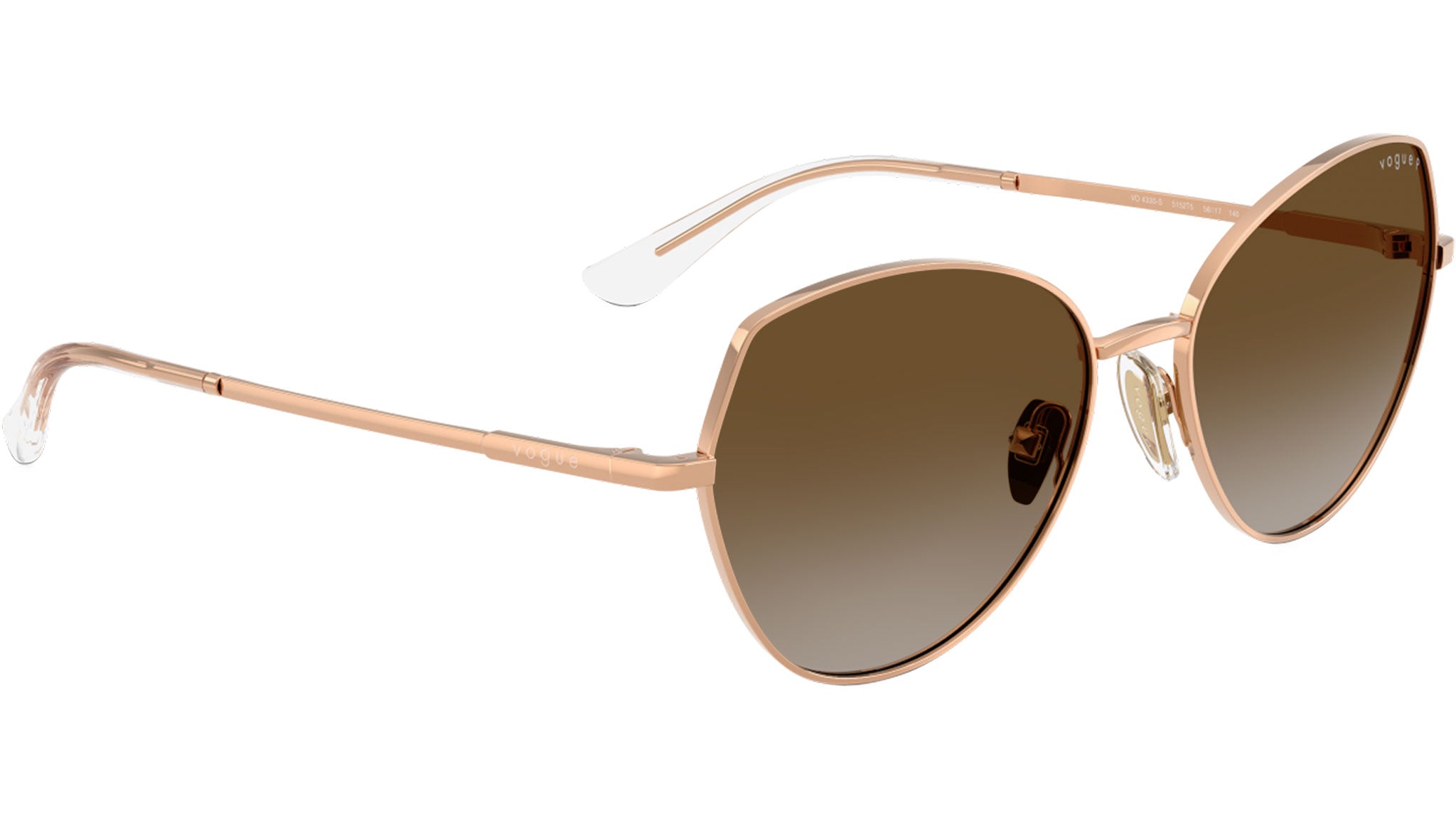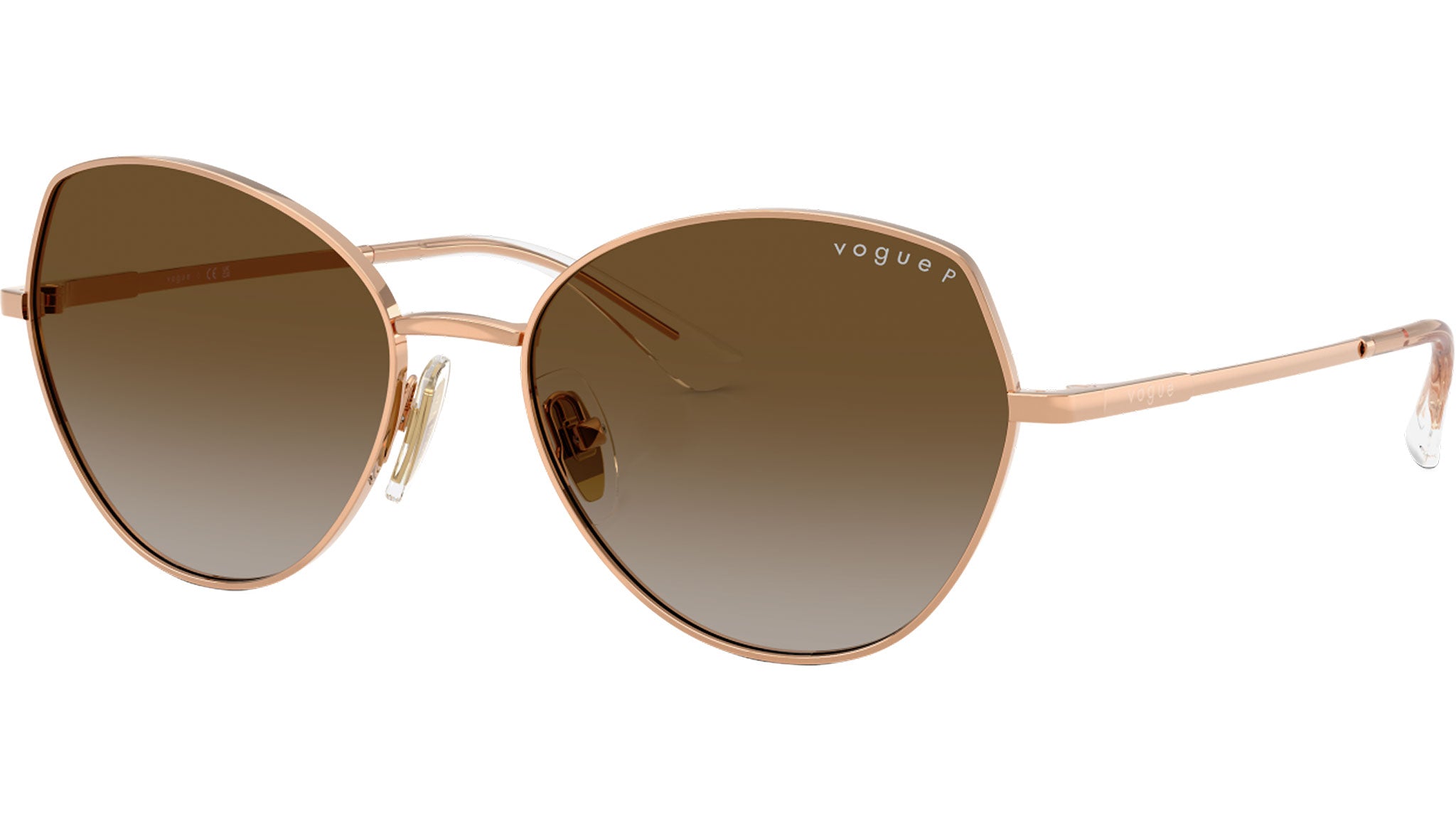 Occhiali da sole Vogue donna modello VO4330S 5152T5 con montatura geometrica in metallo oro rosa e lenti base 6 in policarbonato grigio sfumato marrone polarizzato. Naselli regolabili. Linea: In Vogue. Codice Brand: 0VO4330S. Codice colore: 5152T5. Rivenditore autorizzato online Vogue Eyewear. Ogni prodotto Vogue viene consegnato con astuccio originale e accessori ed è coperto da garanzia del produttore di 12 mesi.