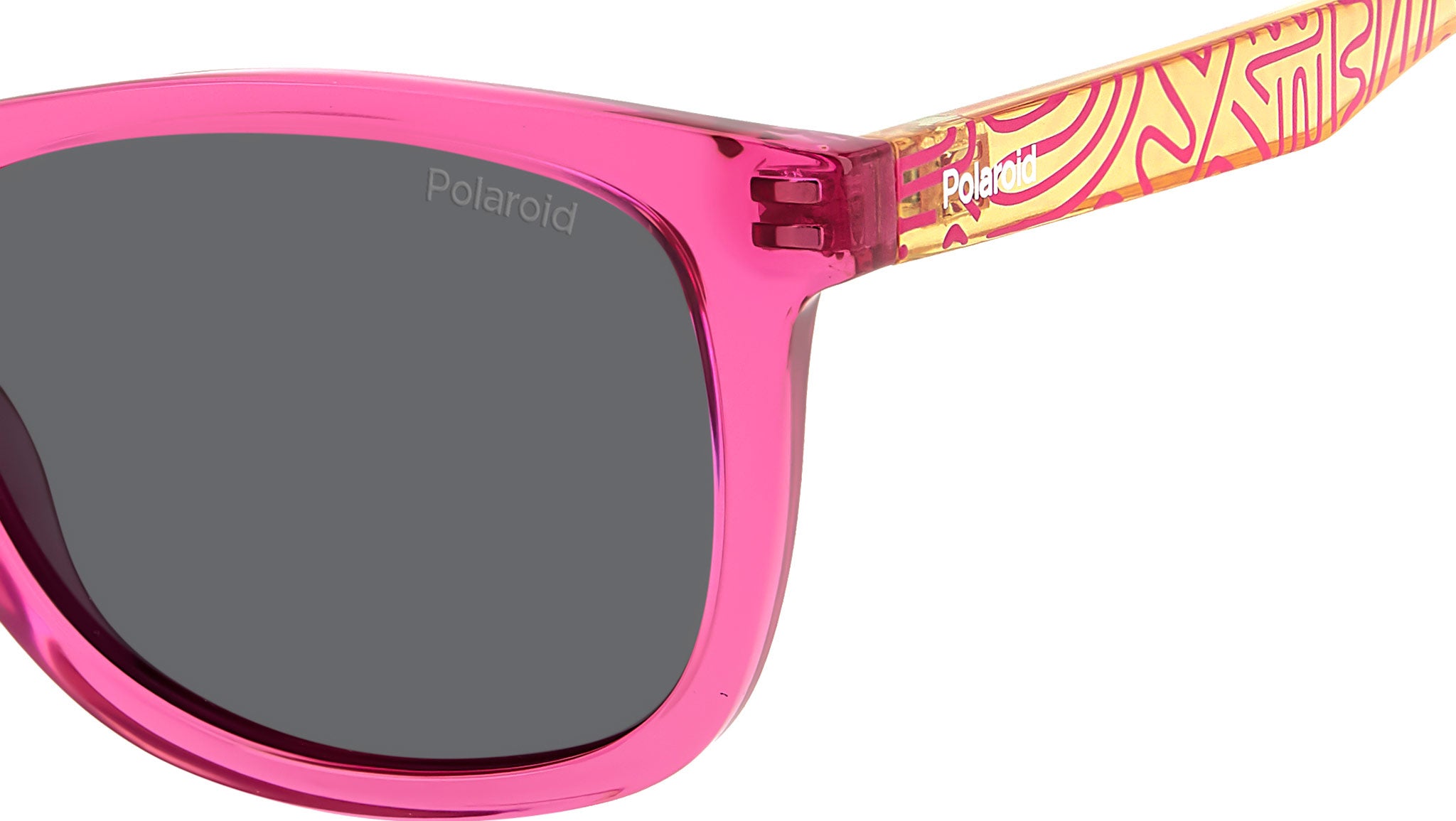 Occhiali da sole Polaroid Kids PLD 8060/S MU1 M9 junior con montatura in policarbonato fucsia e lenti grigio polarizzate. Occhiali da sole Polaroid dedicati ai bambini e alle bambine tra i 7 e i 10 anni di età, per sguardi curiosi e outfit vitaminici. La forma squadrata copia gli stili da adulto, in un delizioso effetto mini-me. Stile a tutto colore con frontale abbinato ai terminali e aste in versione trasparente oppure con pattern. La sicurezza è d’obbligo: la montatura in policarbonato è resistente, le lenti sono sempre polarizzate. Linea: Kids. Codice modello: 206746. Codice colore: MU1 M9. Rivenditore autorizzato Polaroid Kids online. Gli occhiali vengono consegnati con custodia e accessori originali e sono coperti dalla garanzia ufficiale di 12 mesi del produttore.