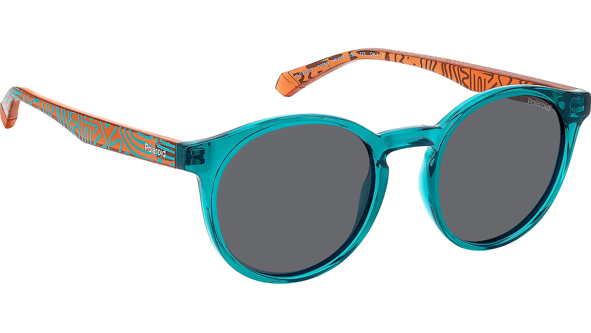 Occhiali da sole Polaroid Kids PLD 8061/S TCF M9 junior con montatura in policarbonato turchese e lenti grigio polarizzate. Occhiali da sole Polaroid di forma pantos dedicati a bambini e bambine dai 7 ai 10 anni di età. Pensati per un look giocoso, sono caratterizzati da colori vivaci declinati in proposte bi-color o con pattern grafico. Sono l’alleato perfetto nelle giornate all’aria aperta: la costruzione in policarbonato è leggera, mentre le lenti polarizzate proteggono dai raggi UV e offrono una visione definita. Linea: Kids. Codice modello: 207385. Codice colore: TCF M9. Rivenditore autorizzato Polaroid Kids online. Gli occhiali vengono consegnati con custodia e accessori originali e sono coperti dalla garanzia ufficiale di 12 mesi del produttore.