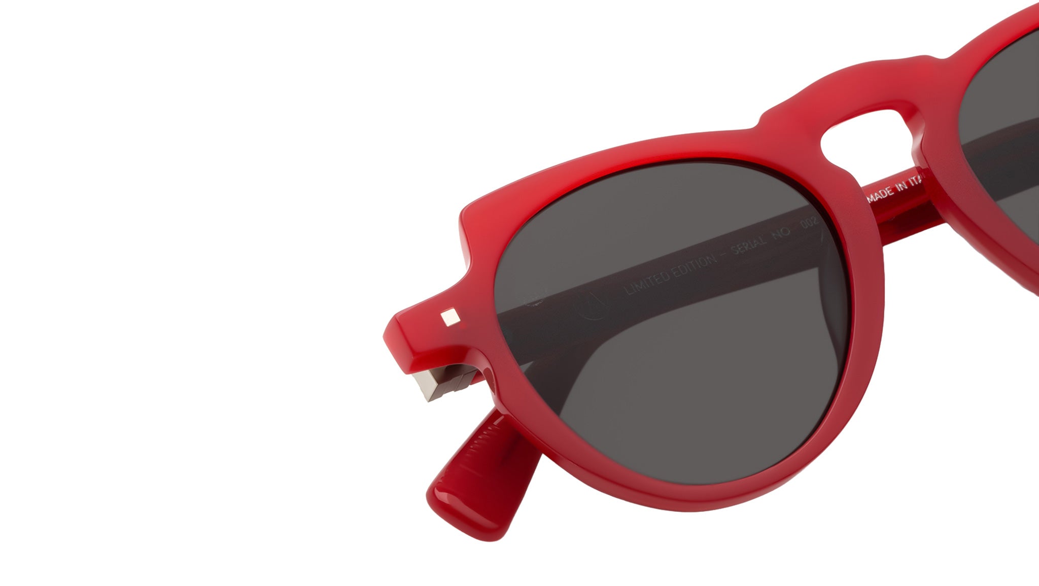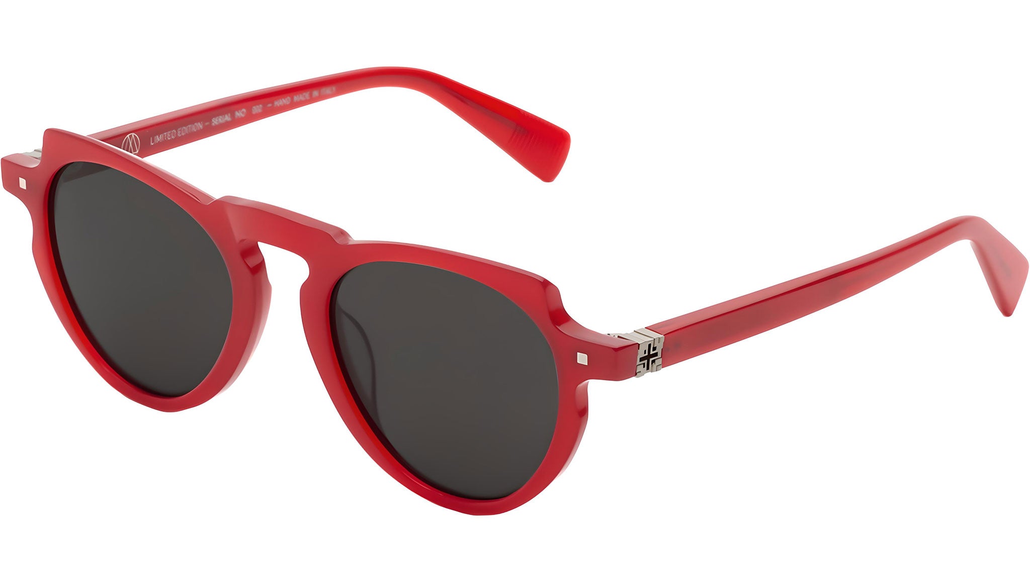 Occhiali da sole Ottomila Stuart Cherry con montatura unisex rotonda in acetato rosso e lenti color grigio scuro. Limited Edition. Linea: Seasonal. Codice modello: 9WU. Made in Italy. Rivenditore autorizzato 8000 Eyewear online. Gli occhiali vengono consegnati con custodia e accessori originali e sono coperti dalla garanzia ufficiale di 12 mesi del produttore.