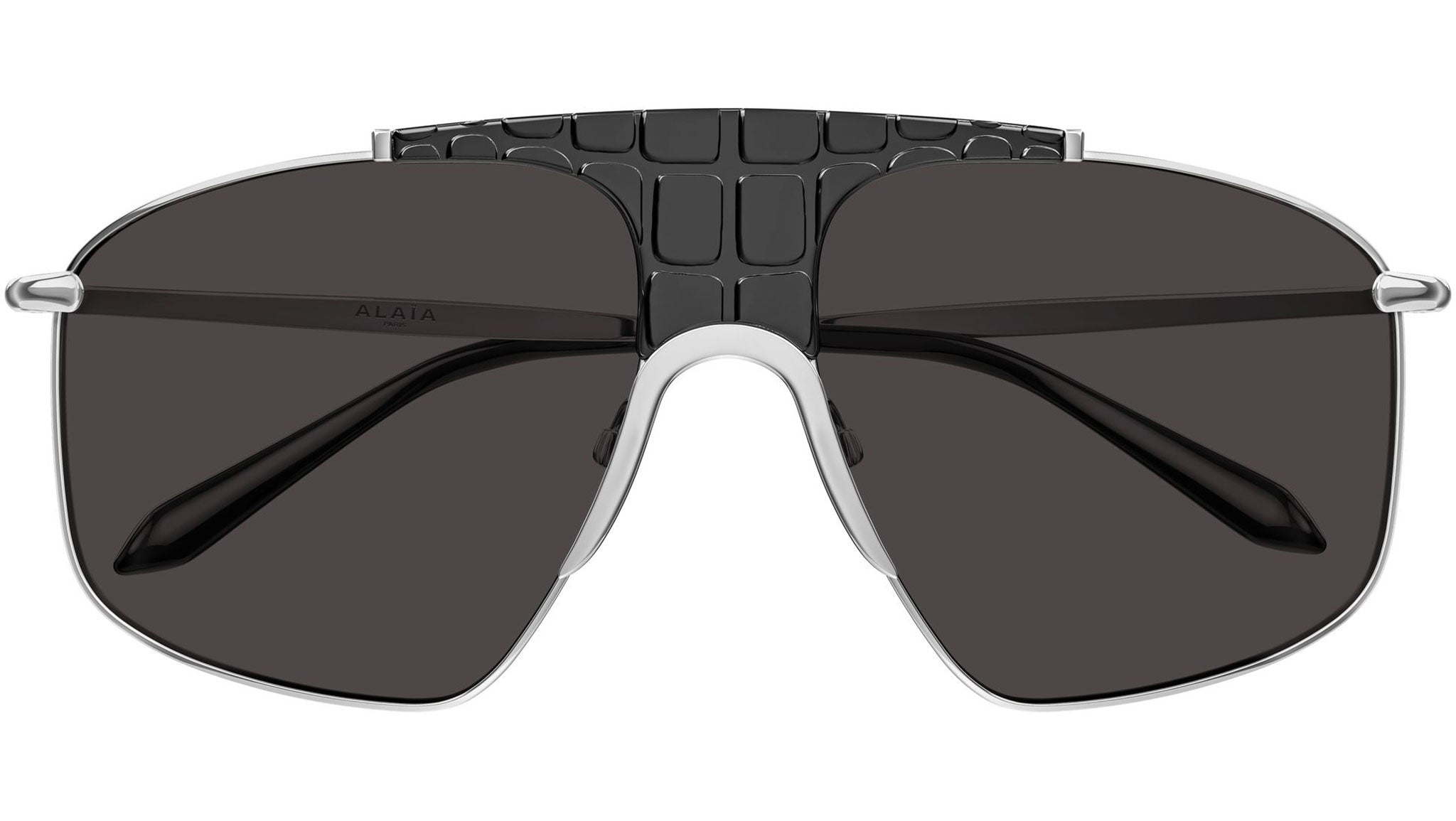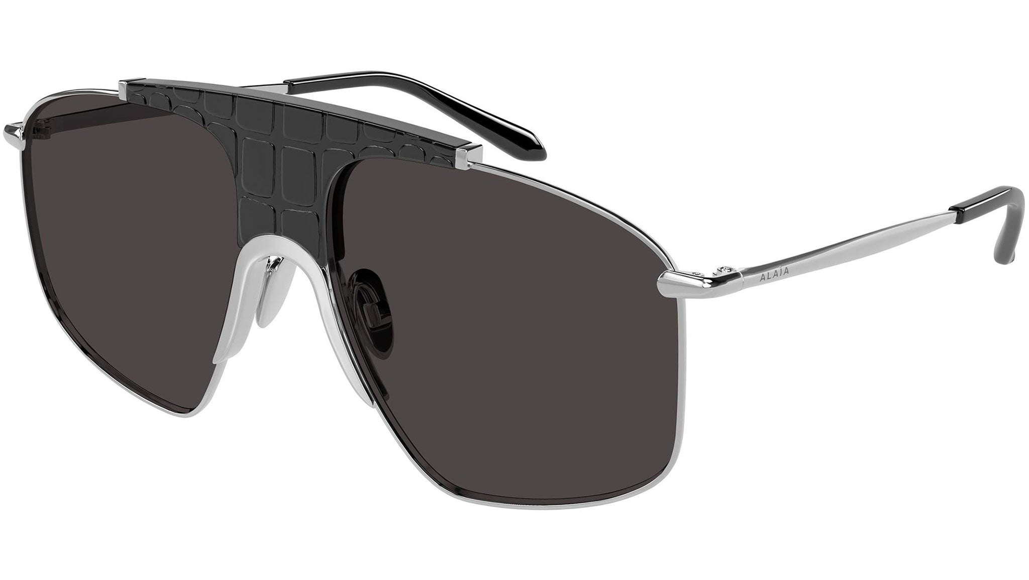Occhiali da sole Azzedine Alaïa AA0098S 001 donna con montatura aviatore in metallo argento lucido, nero lucido con texture coccodrillo e lenti grigio tinta unita. Linea: Azzedine Alaïa. Codice modello: AA0098S. Codice colore: 001. Made in Japan. Rivenditore autorizzato Azzedine Alaïa online. Gli occhiali vengono consegnati con custodia e accessori originali e sono coperti dalla garanzia ufficiale di 12 mesi del produttore.