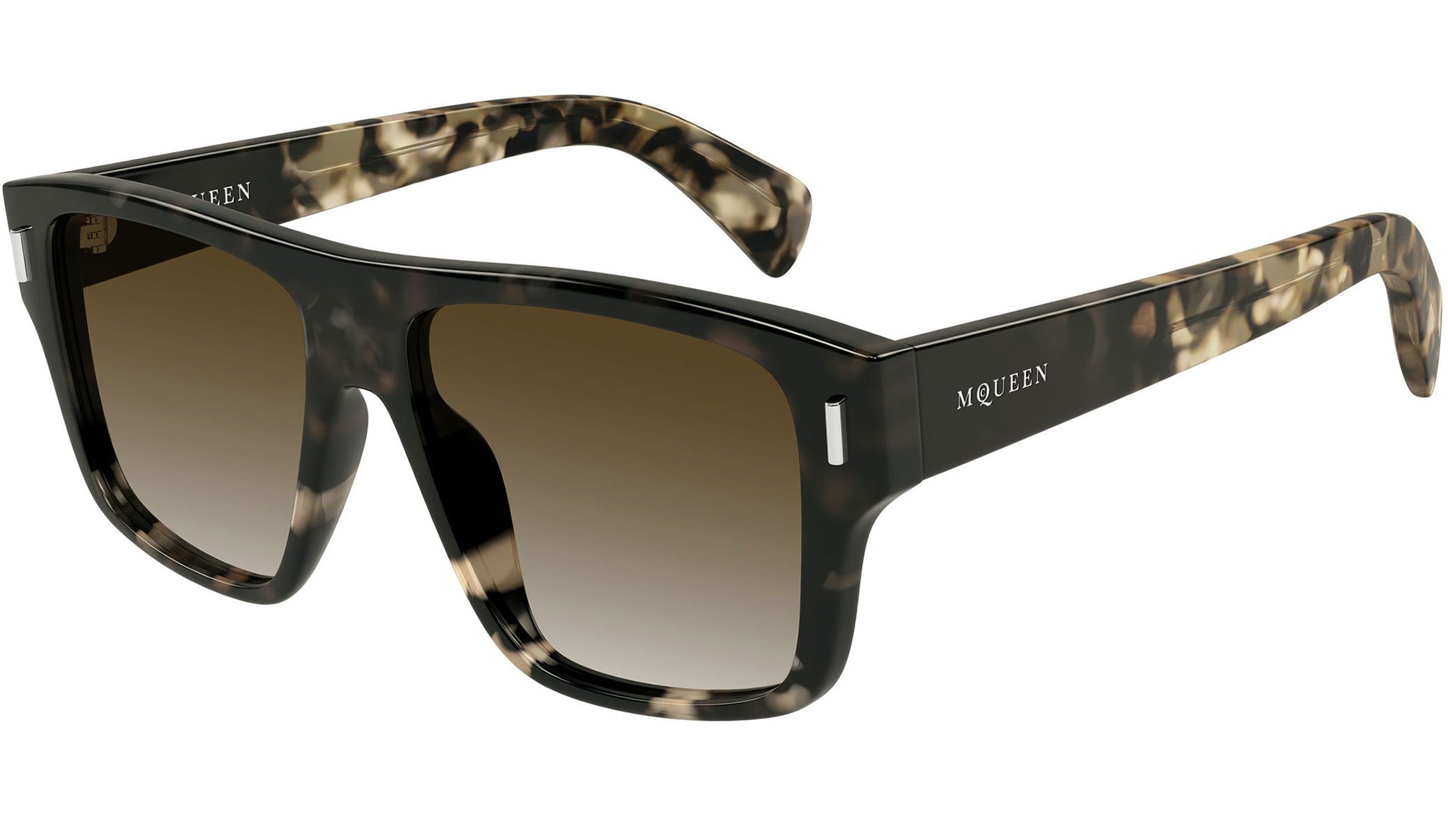 Occhiali da sole Alexander McQueen AM0550S 002 uomo con montatura rettangolare in acetato riciclato avana nero sfumato lucido e lenti marrone sfumato. Linea: T-Bar. Codice modello: AM0550S. Codice colore: 002. Made in Italy. Rivenditore autorizzato Alexander McQueen online. Gli occhiali vengono consegnati con custodia e accessori originali e sono coperti dalla garanzia ufficiale di 12 mesi del produttore.