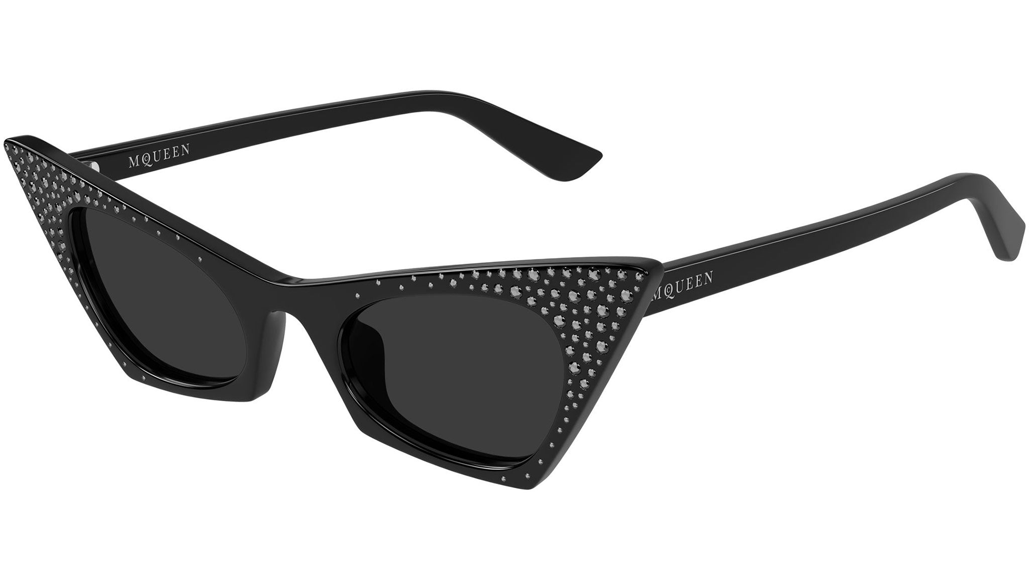 Occhiali da sole Alexander McQueen AM0557S 005 donna con montatura cat eye in acetato riciclato nero solido / strass lucido e lenti grigio tinta unita. Linea: Logo. Codice modello: AM0557S. Codice colore: 005. Made in Italy. Rivenditore autorizzato Alexander McQueen online. Gli occhiali vengono consegnati con custodia e accessori originali e sono coperti dalla garanzia ufficiale di 12 mesi del produttore.