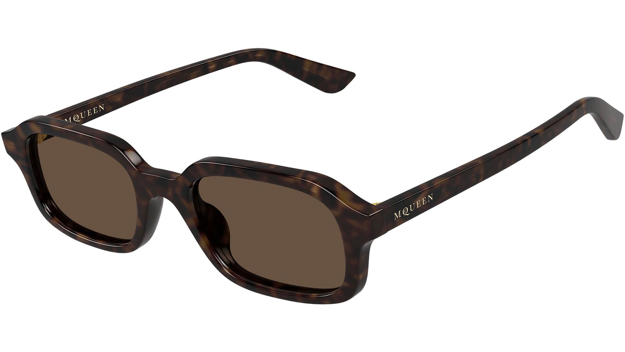 Occhiali da sole Alexander McQueen AM0558S 002 uomo con montatura rettangolare in acetato riciclato avana scuro lucido e lenti marrone tinta unita. Linea: Logo. Codice modello: AM0558S. Codice colore: 002. Made in Italy. Rivenditore autorizzato Alexander McQueen online. Gli occhiali vengono consegnati con custodia e accessori originali e sono coperti dalla garanzia ufficiale di 12 mesi del produttore.