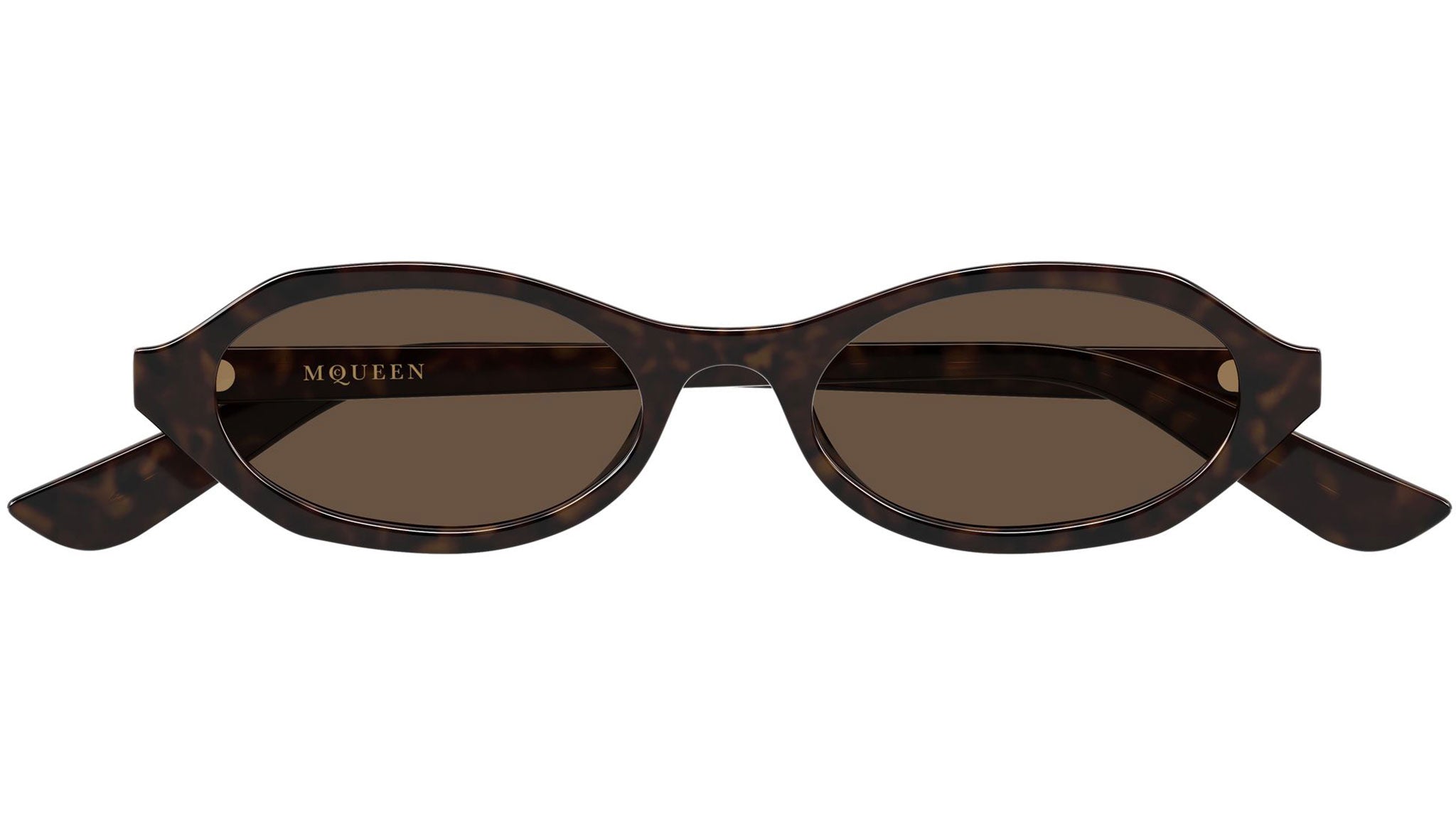 Occhiali da sole Alexander McQueen AM0559S 002 donna con montatura pantos in acetato riciclato avana scuro lucido e lenti marrone tinta unita. Linea: Logo. Codice modello: AM0559S. Codice colore: 002. Made in Italy. Rivenditore autorizzato Alexander McQueen online. Gli occhiali vengono consegnati con custodia e accessori originali e sono coperti dalla garanzia ufficiale di 12 mesi del produttore.