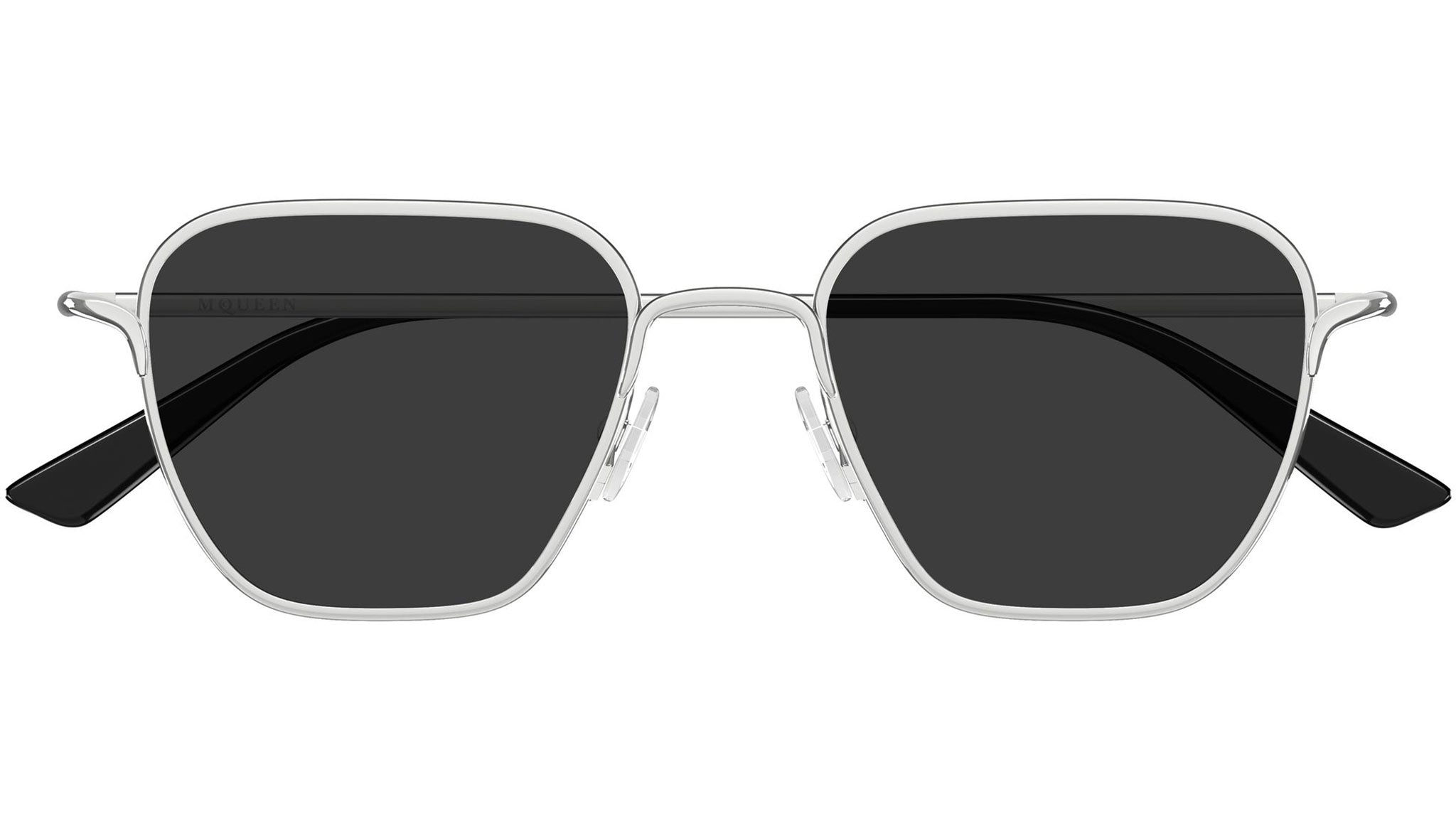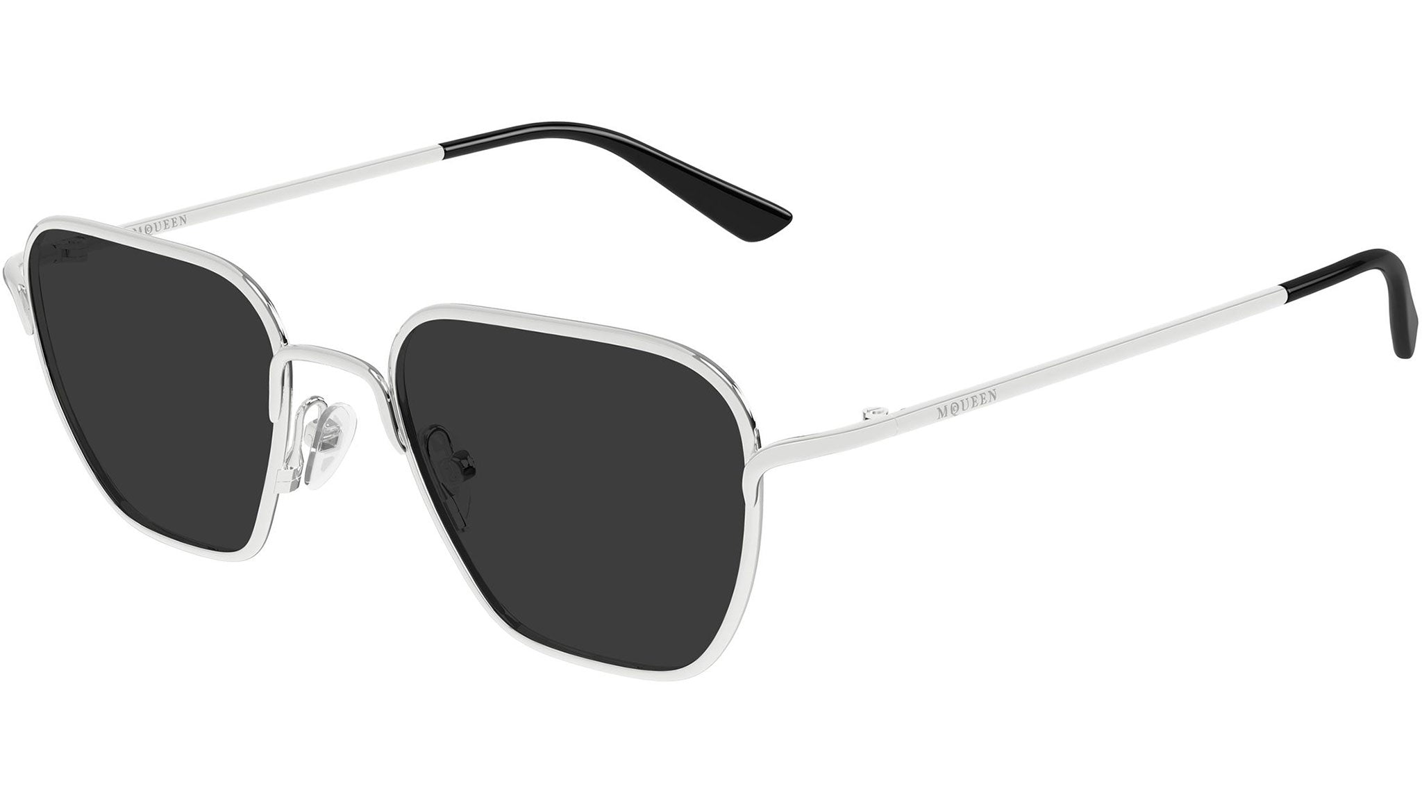 Occhiali da sole Alexander McQueen AM0561S 001 unisex con montatura rettangolare in metallo argento lucido e lenti grigio tinta unita. Linea: Logo. Codice modello: AM0561S. Codice colore: 001. Made in Italy. Rivenditore autorizzato Alexander McQueen online. Gli occhiali vengono consegnati con custodia e accessori originali e sono coperti dalla garanzia ufficiale di 12 mesi del produttore.