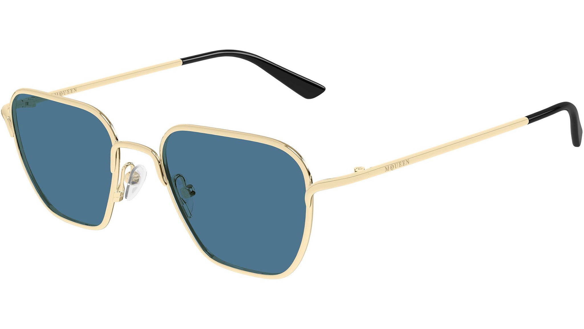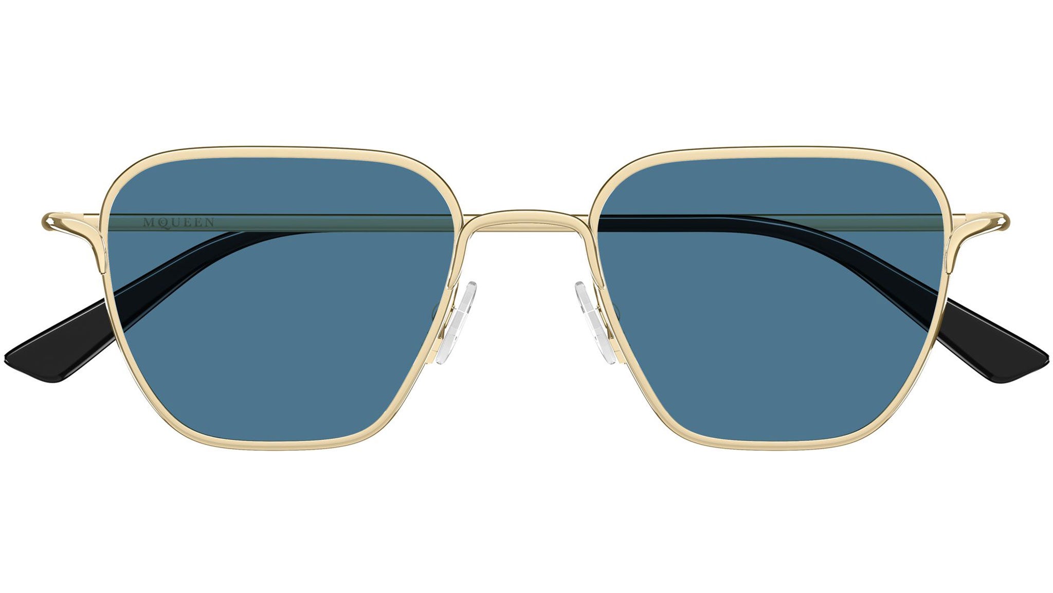 Occhiali da sole Alexander McQueen AM0561S 004 unisex con montatura rettangolare in metallo oro chiaro lucido e lenti blu tinta unita. Linea: Logo. Codice modello: AM0561S. Codice colore: 004. Made in Italy. Rivenditore autorizzato Alexander McQueen online. Gli occhiali vengono consegnati con custodia e accessori originali e sono coperti dalla garanzia ufficiale di 12 mesi del produttore.